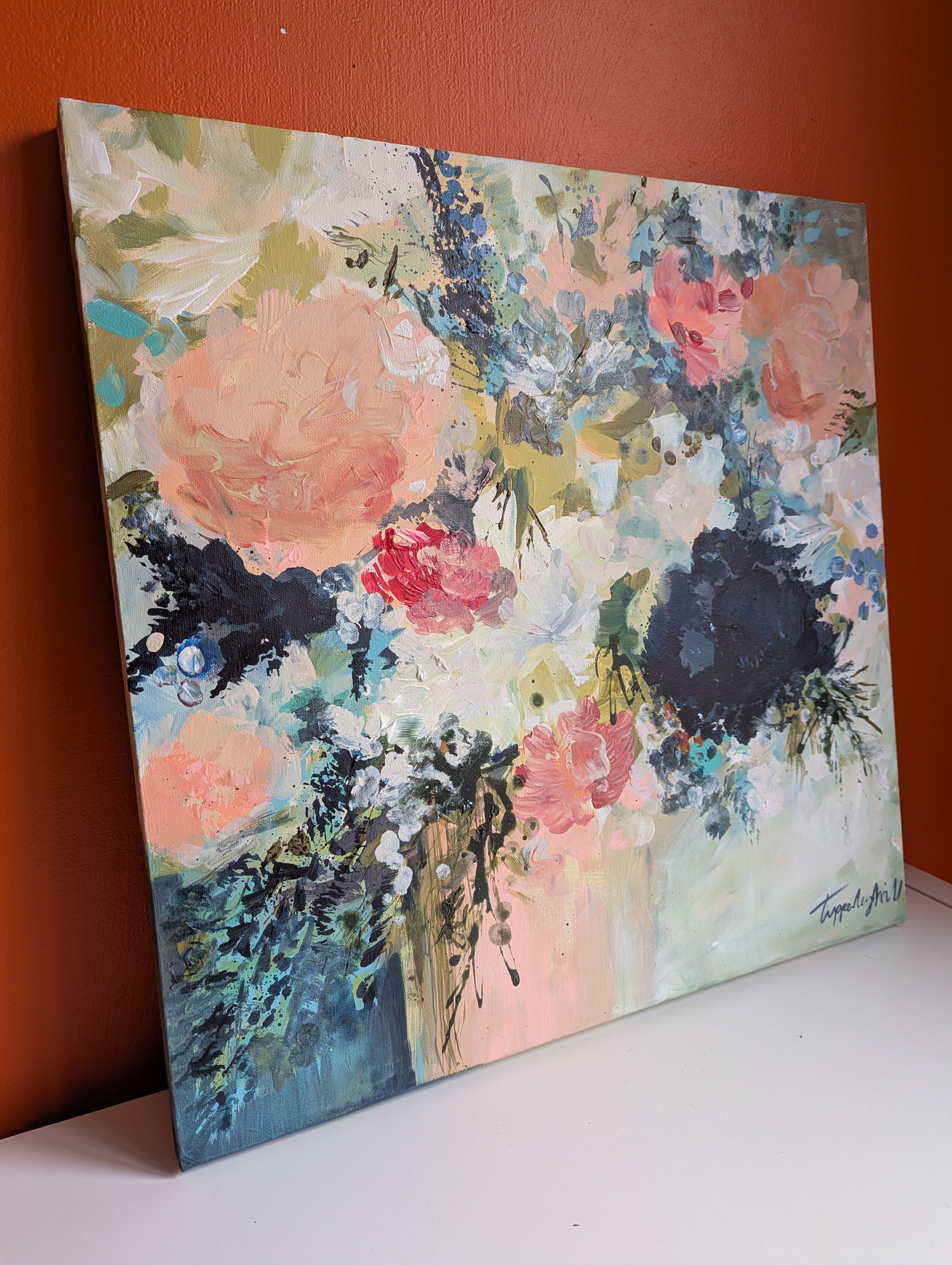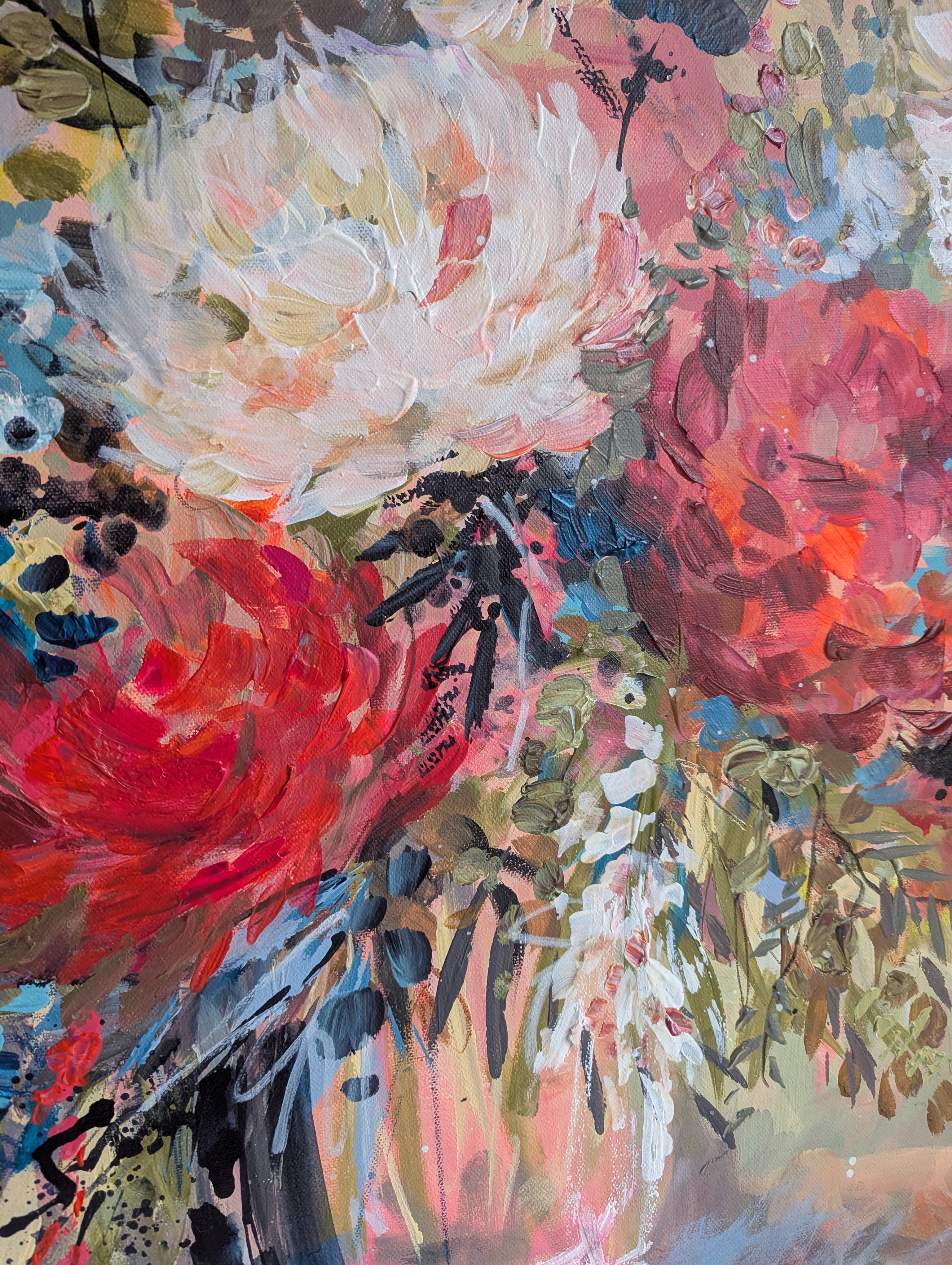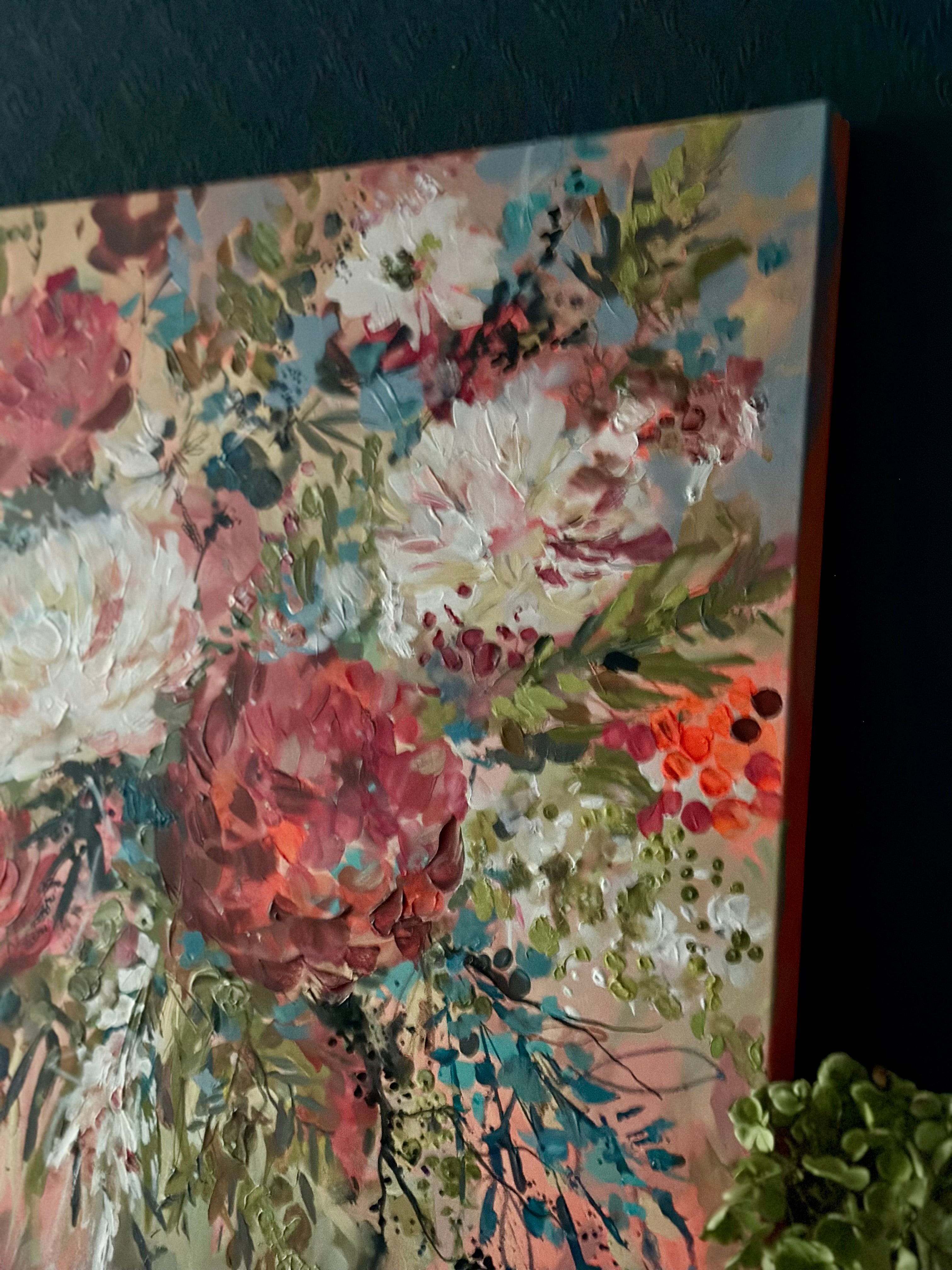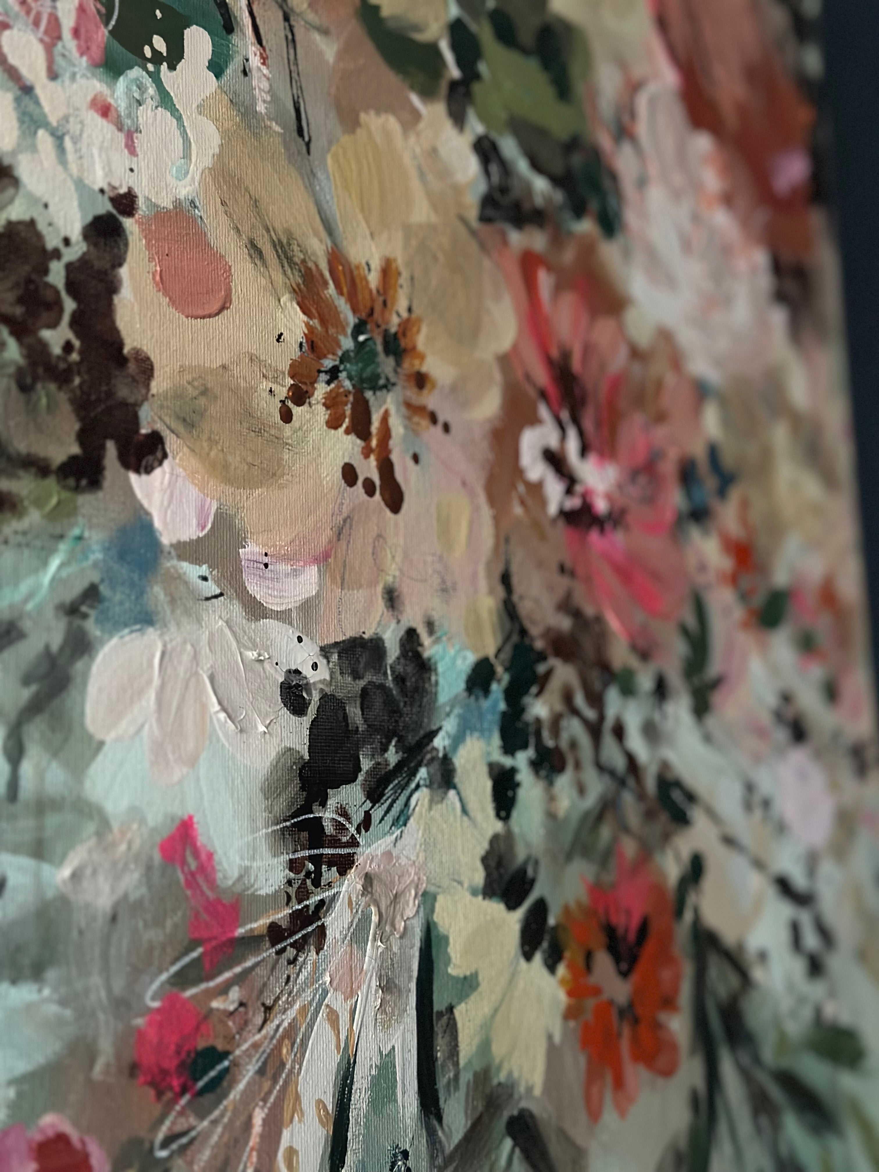 Abstract floral "Love is in Bloom" 70 x 100cm in deep edge canvas