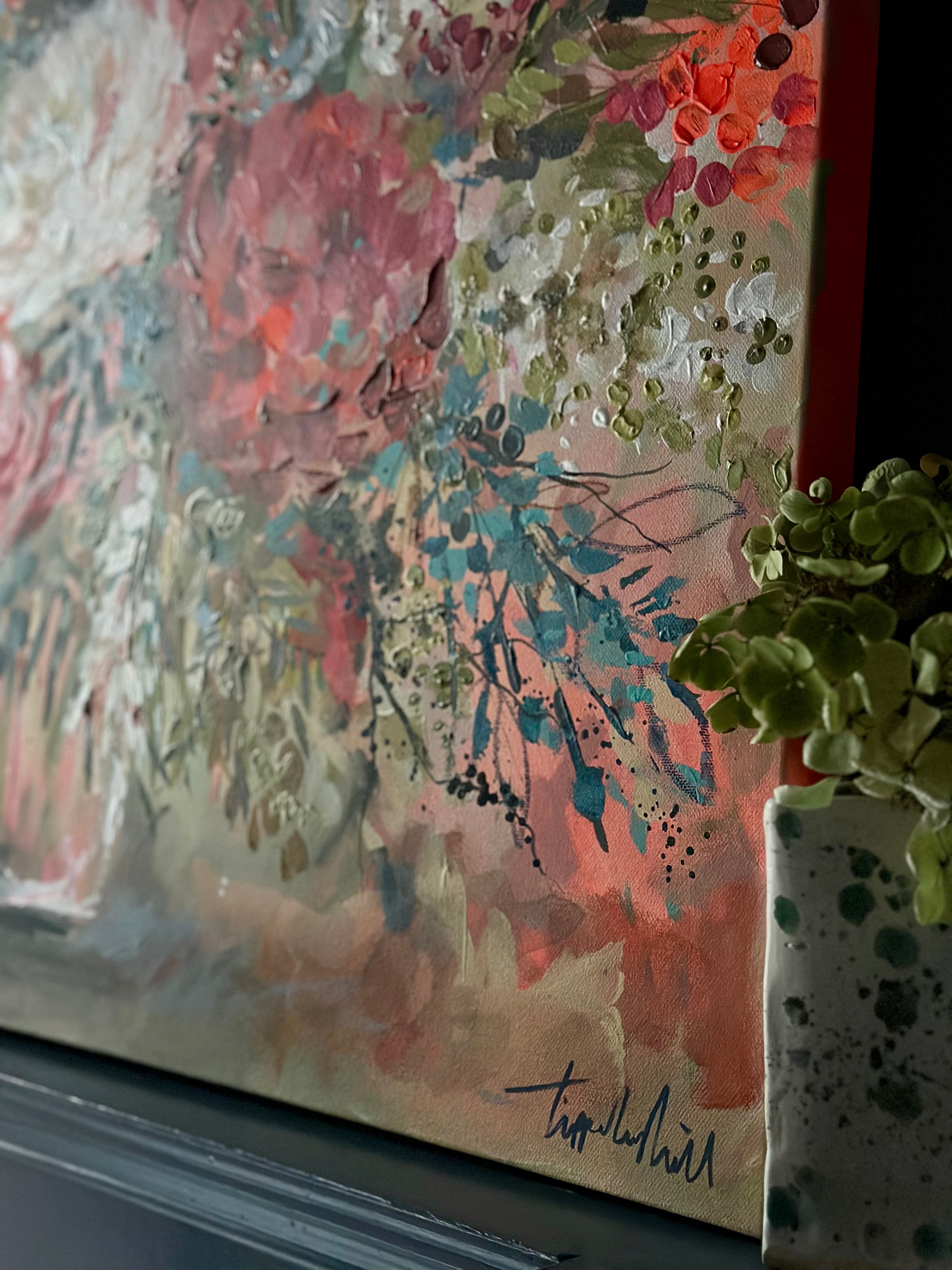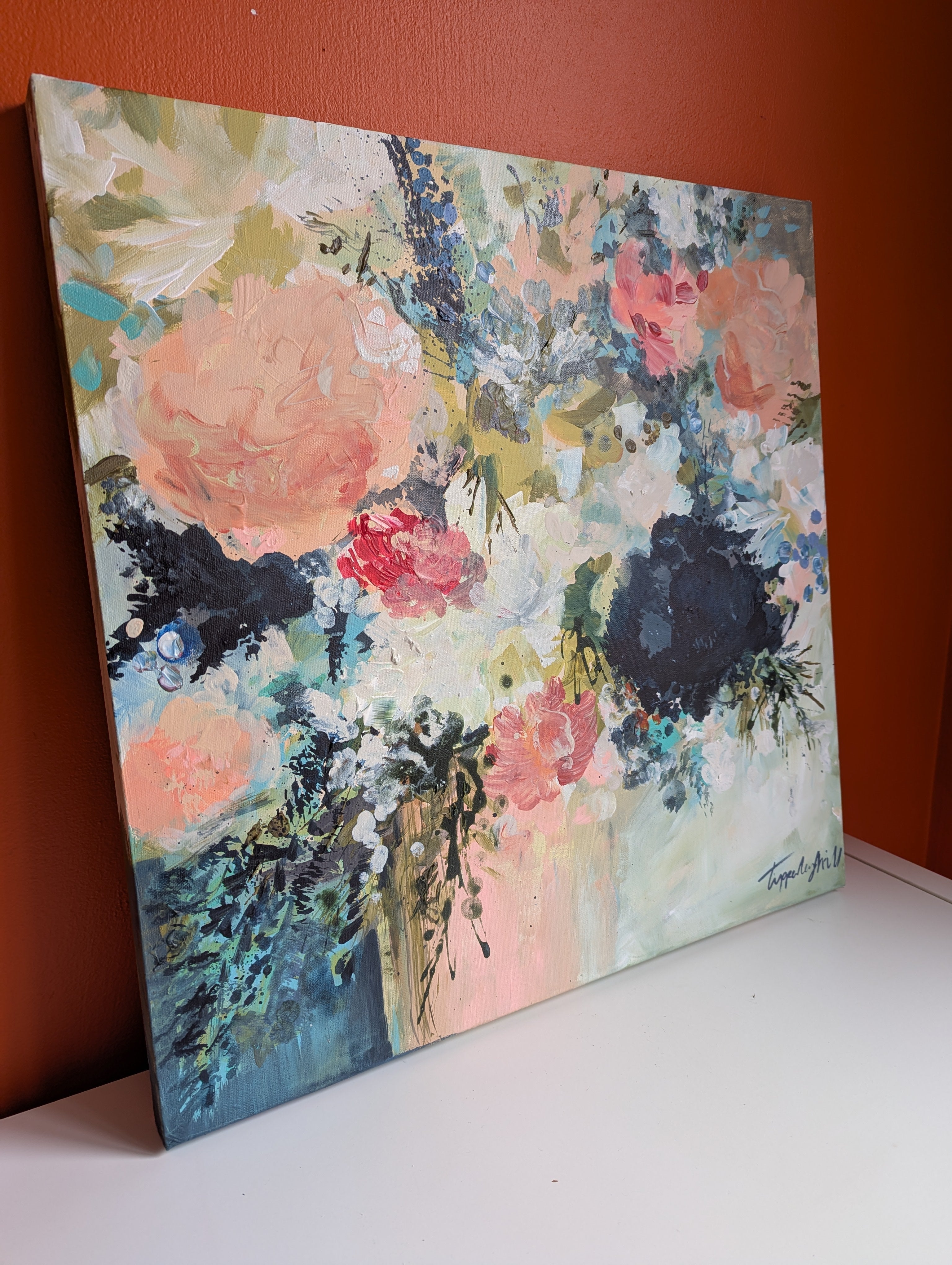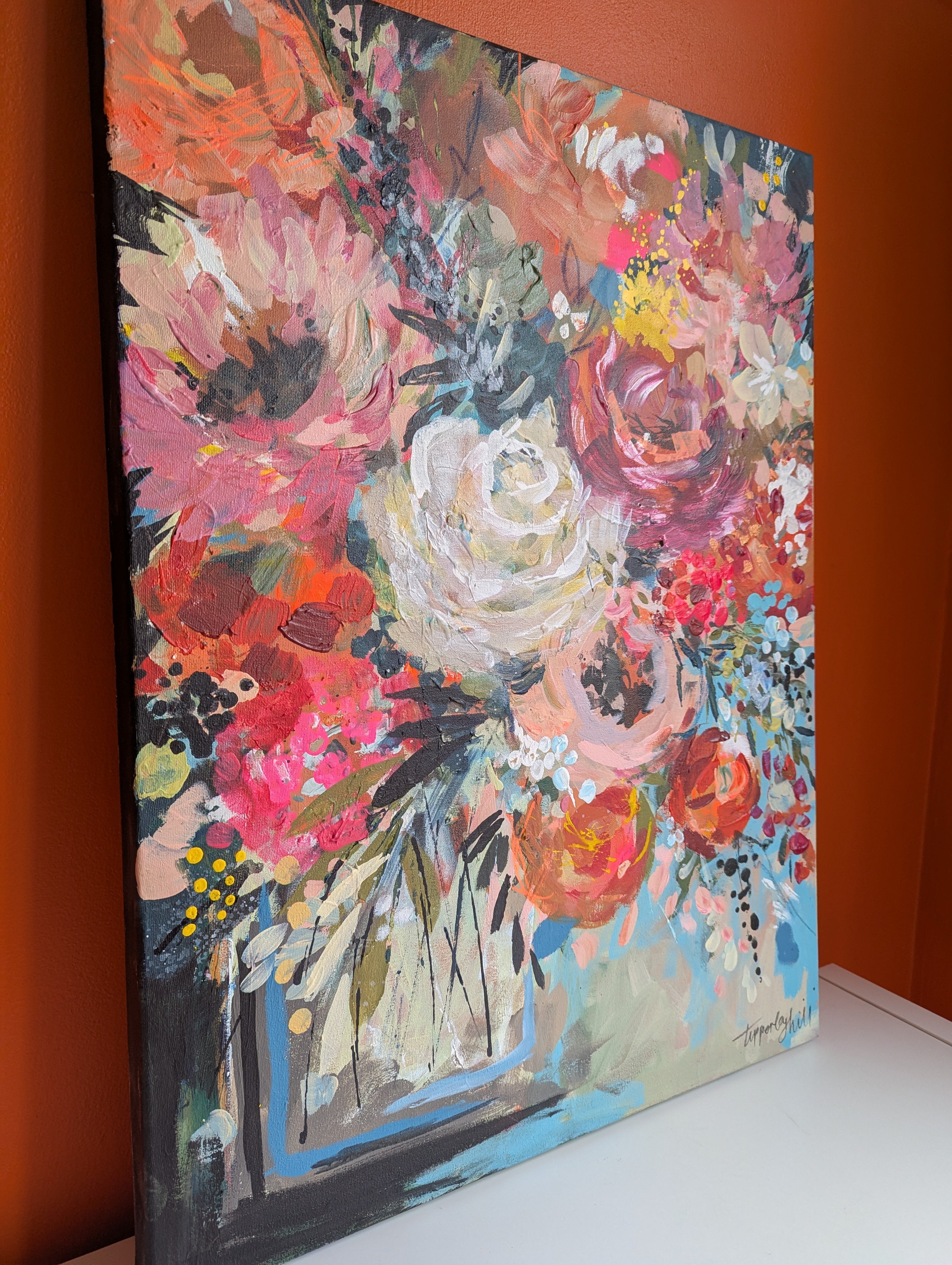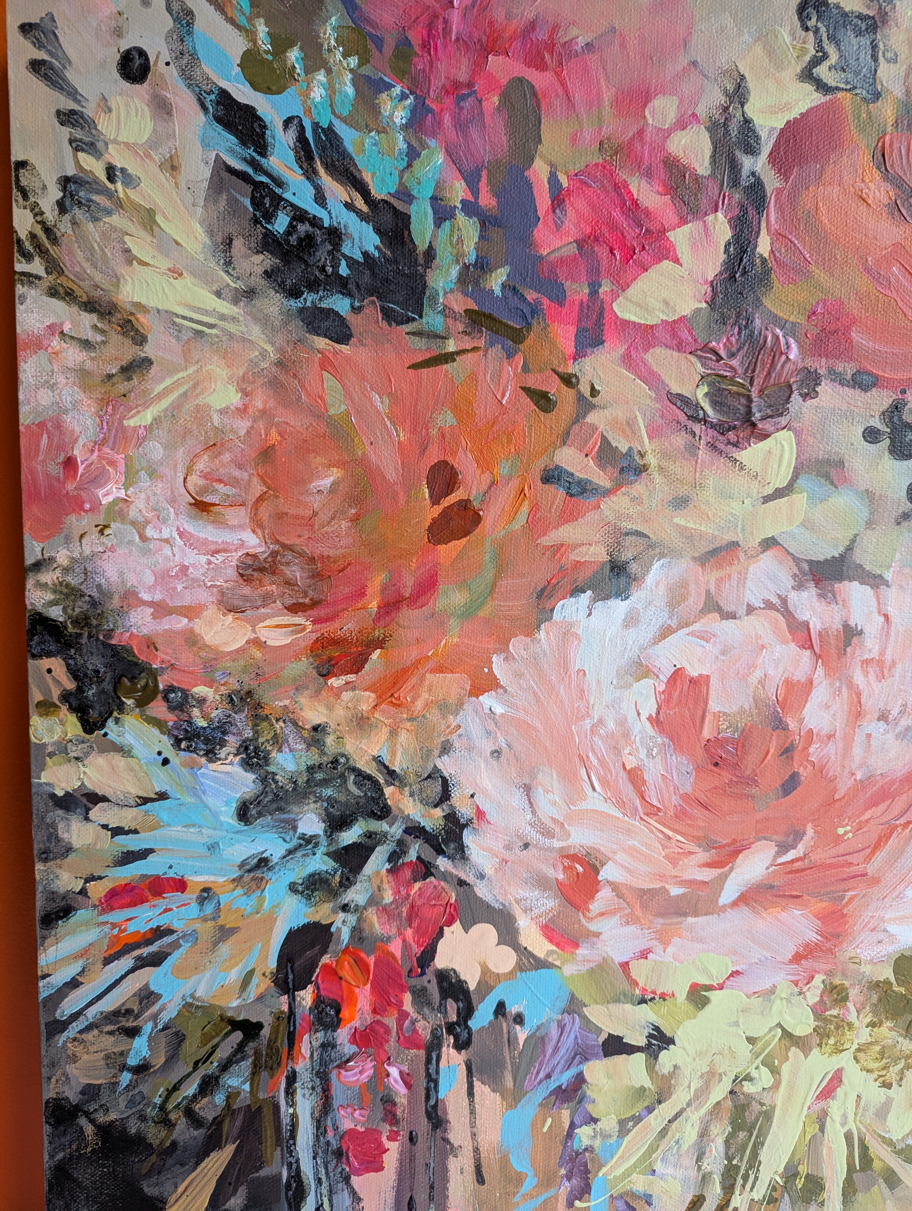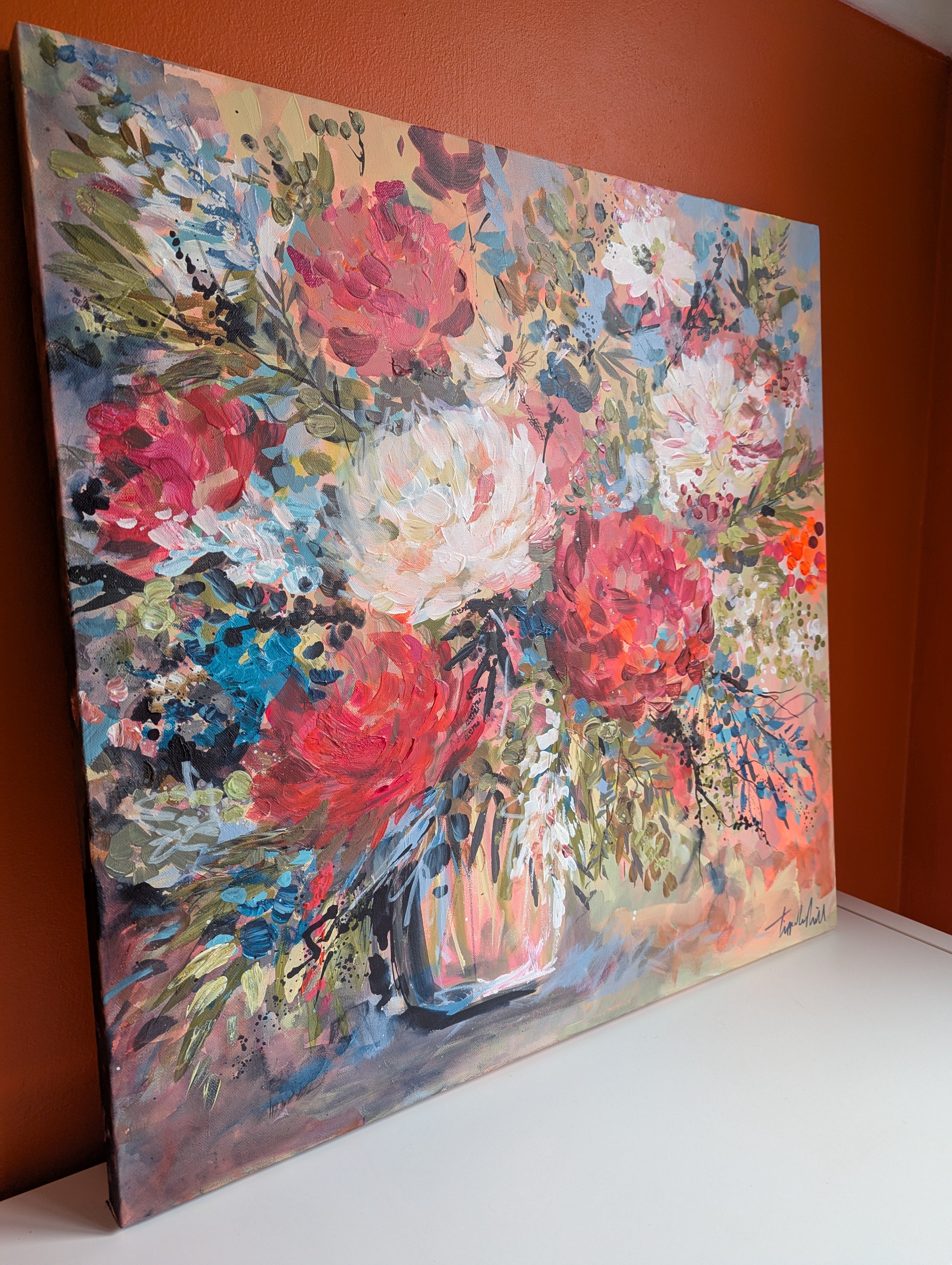 Abstract floral "Love is in Bloom" 70 x 100cm in deep edge canvas