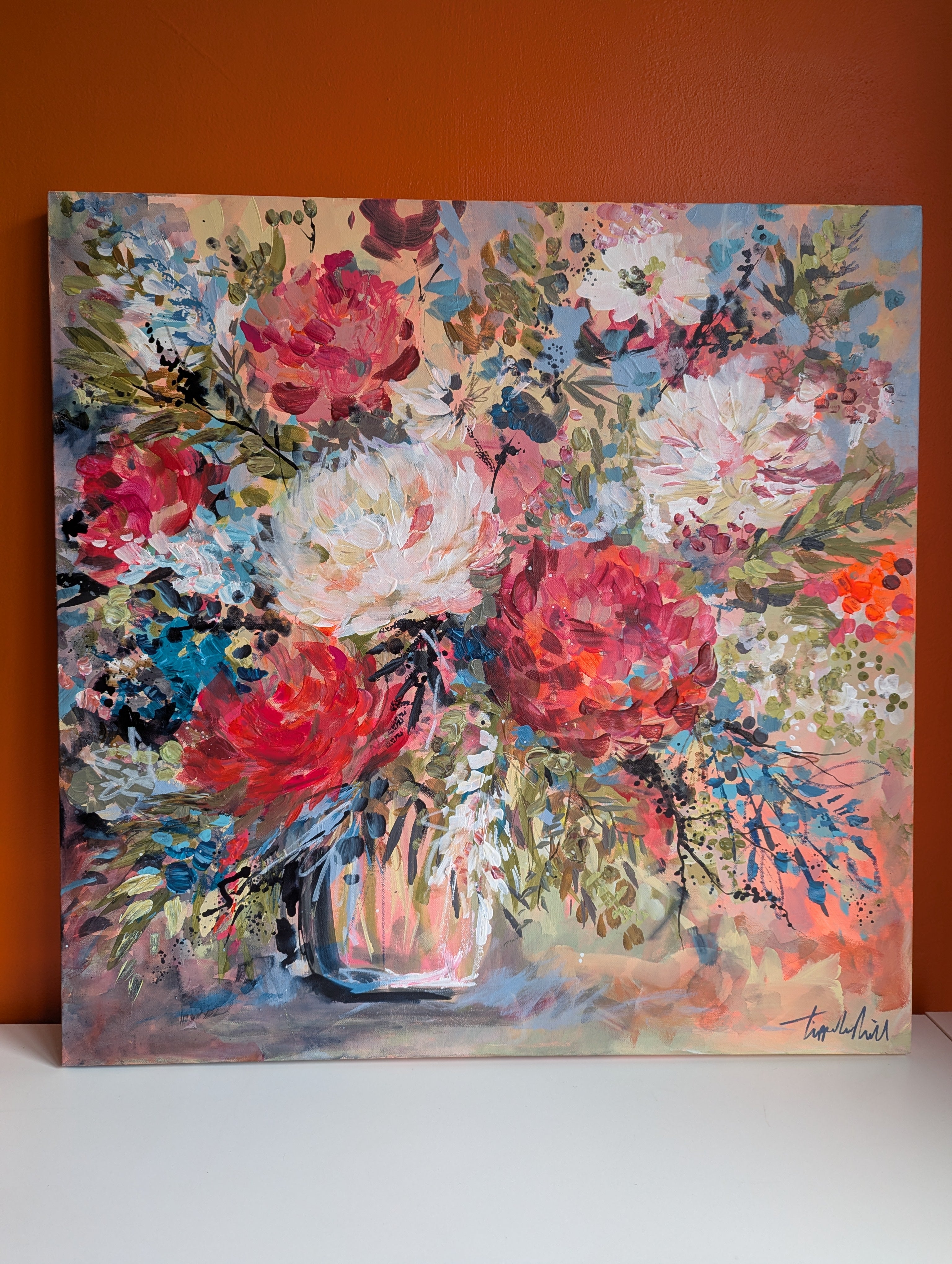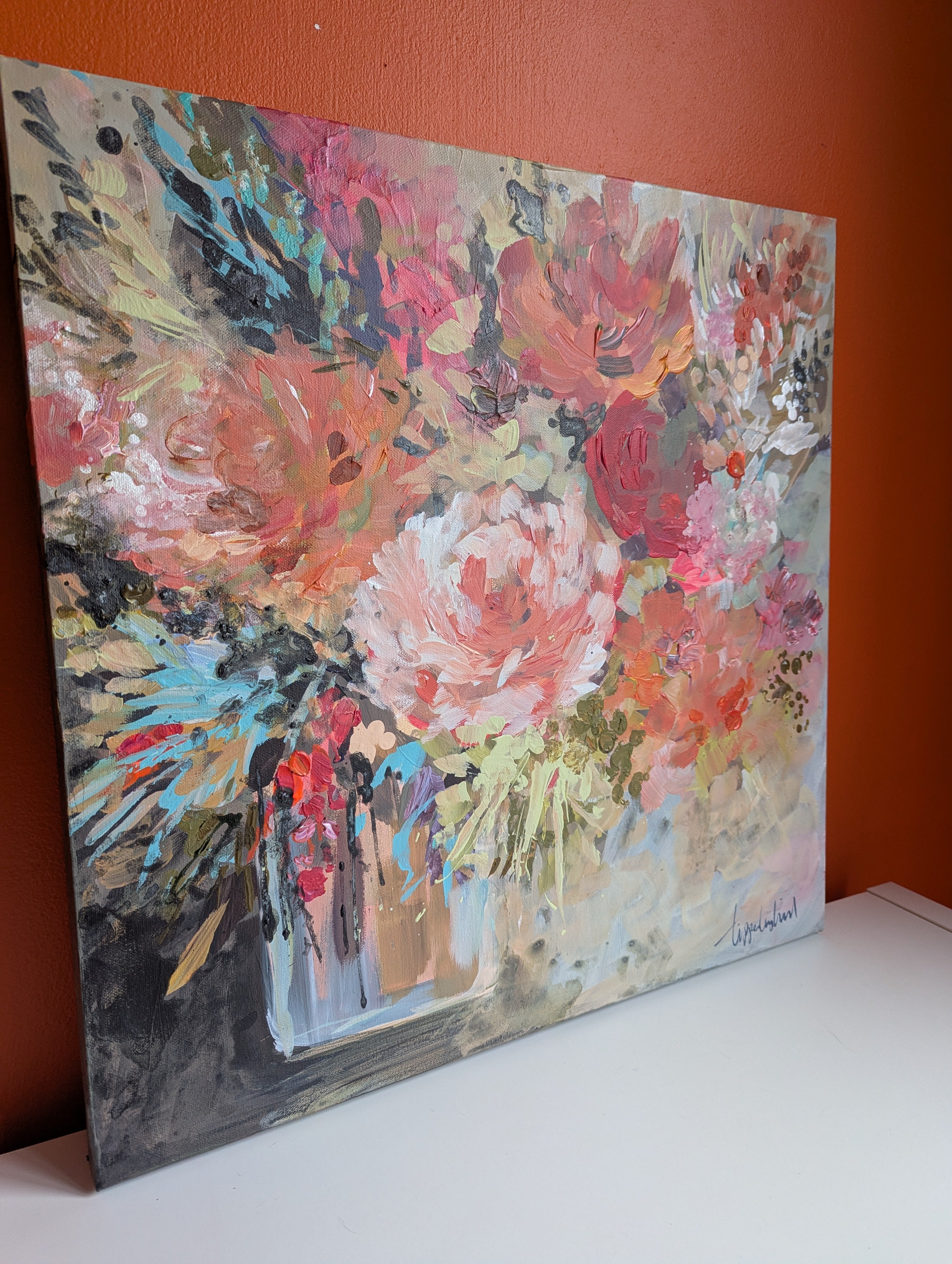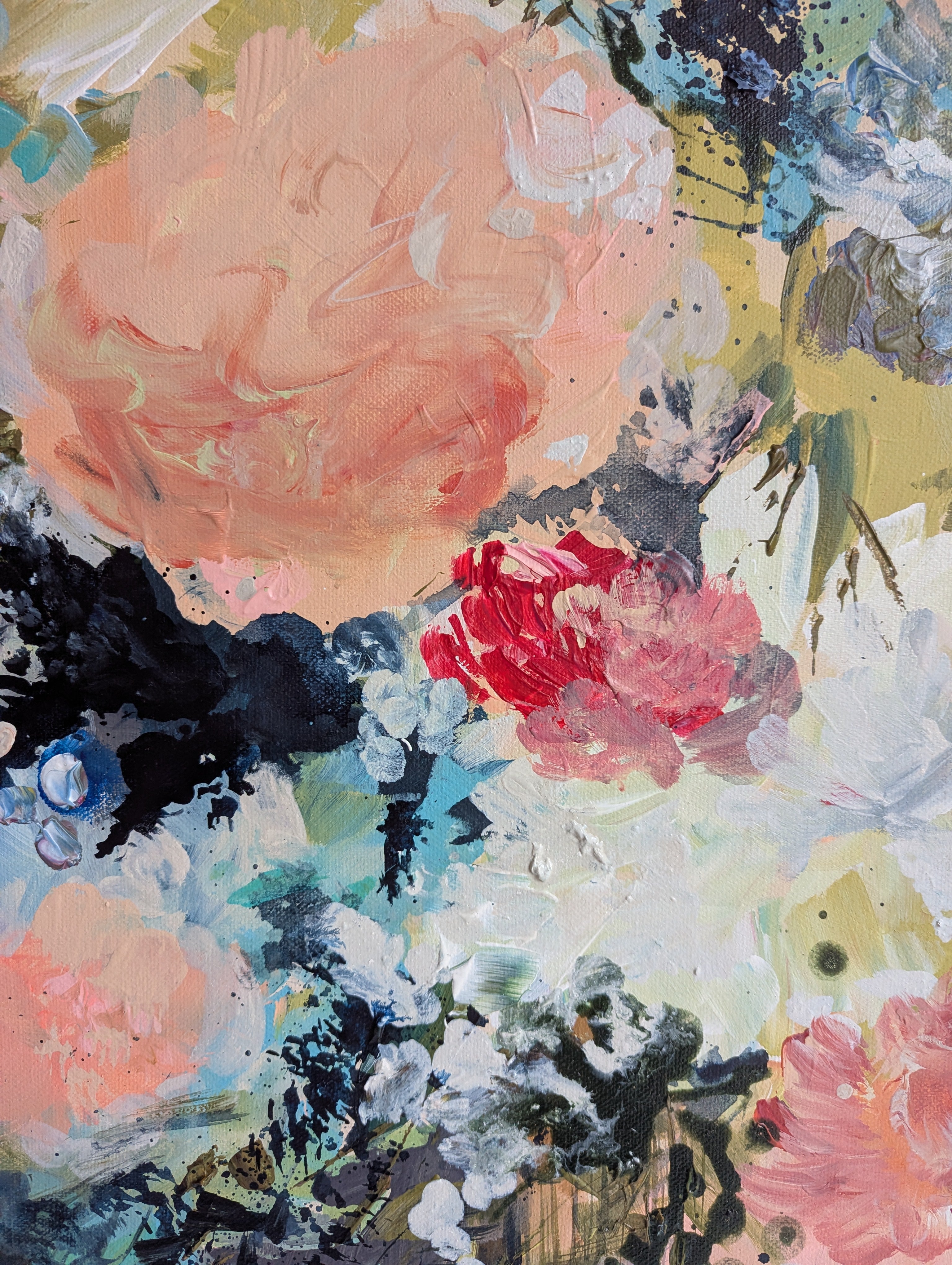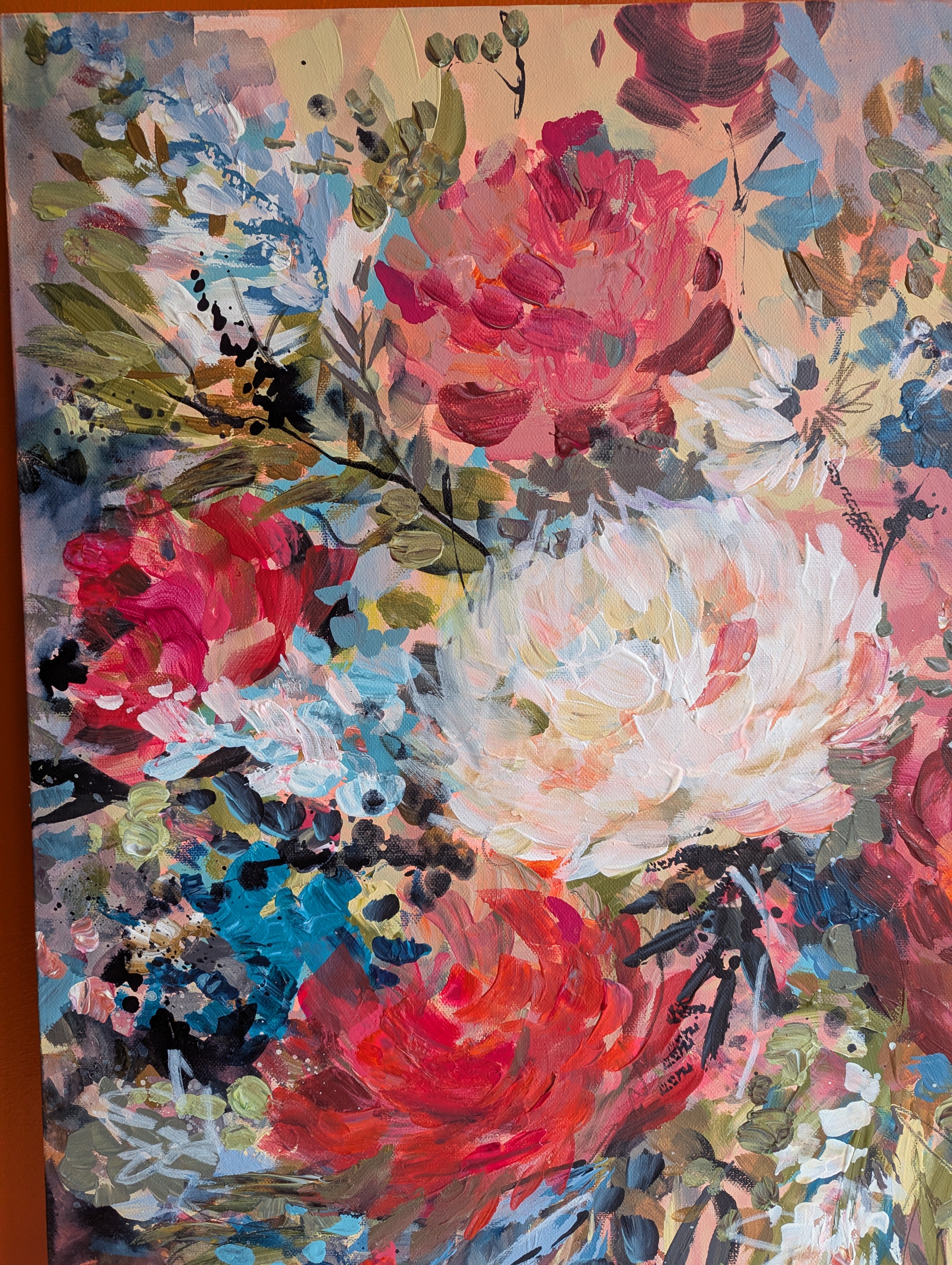 Abstract floral "Love is in Bloom" 70 x 100cm in deep edge canvas
