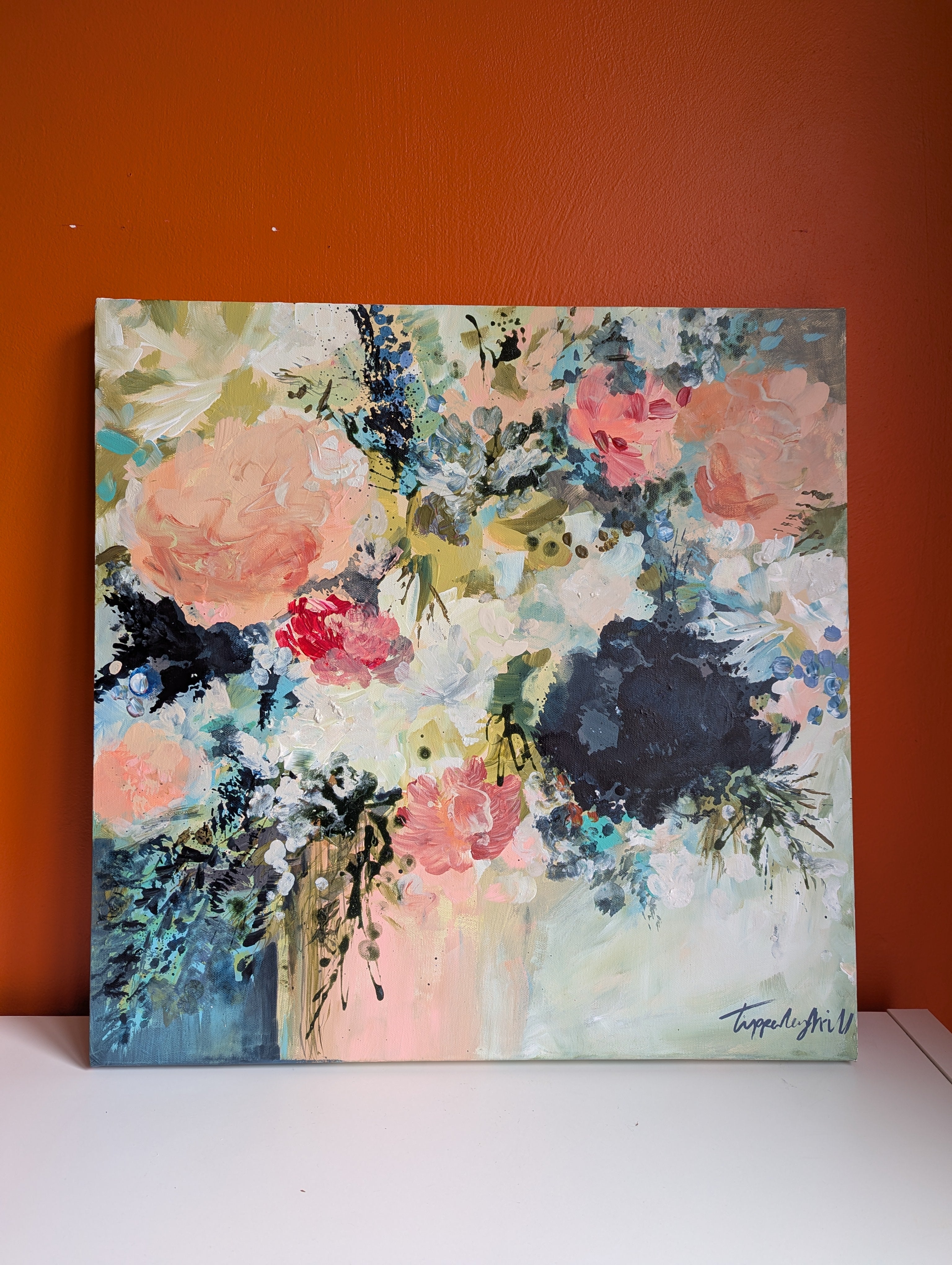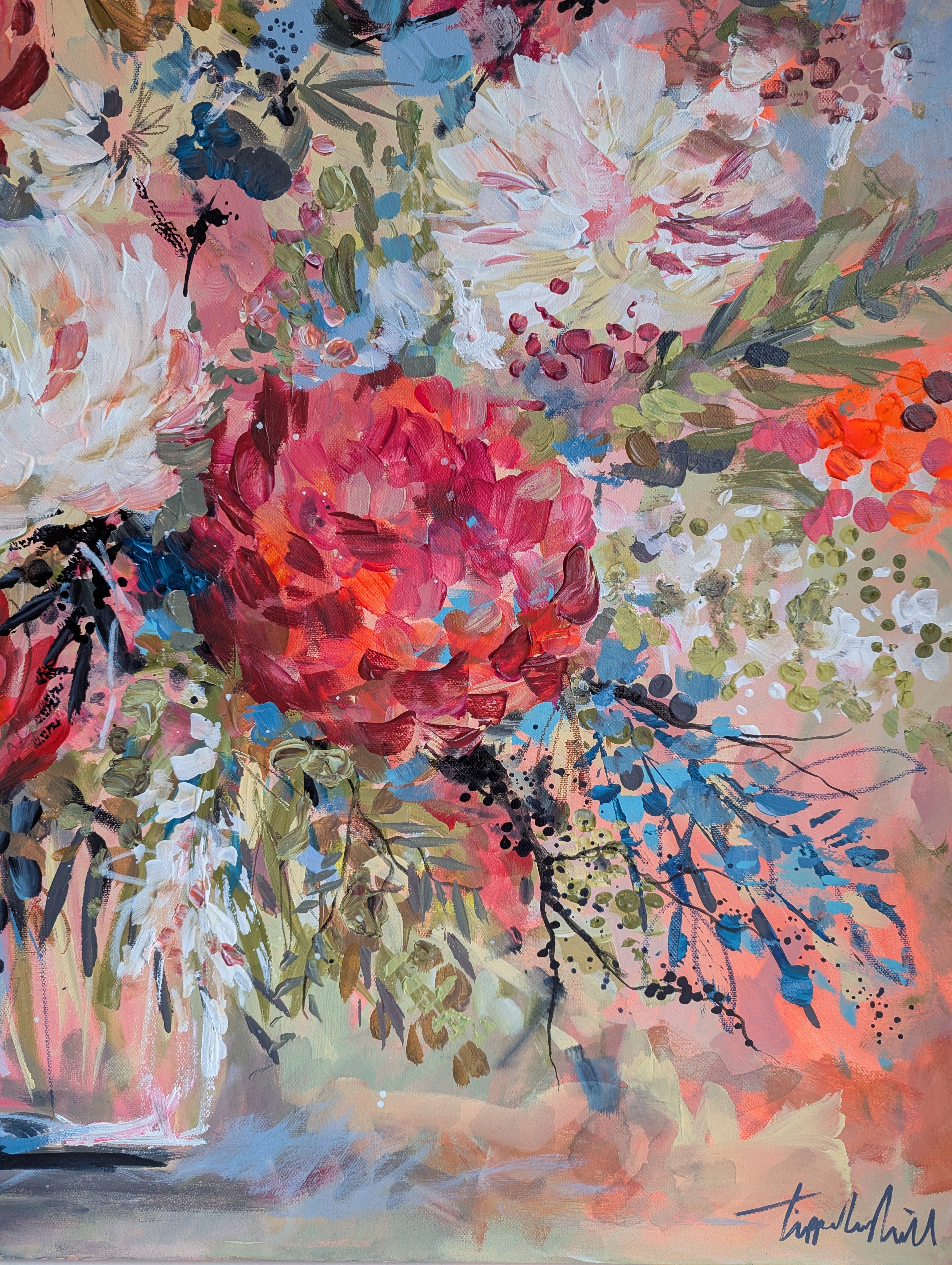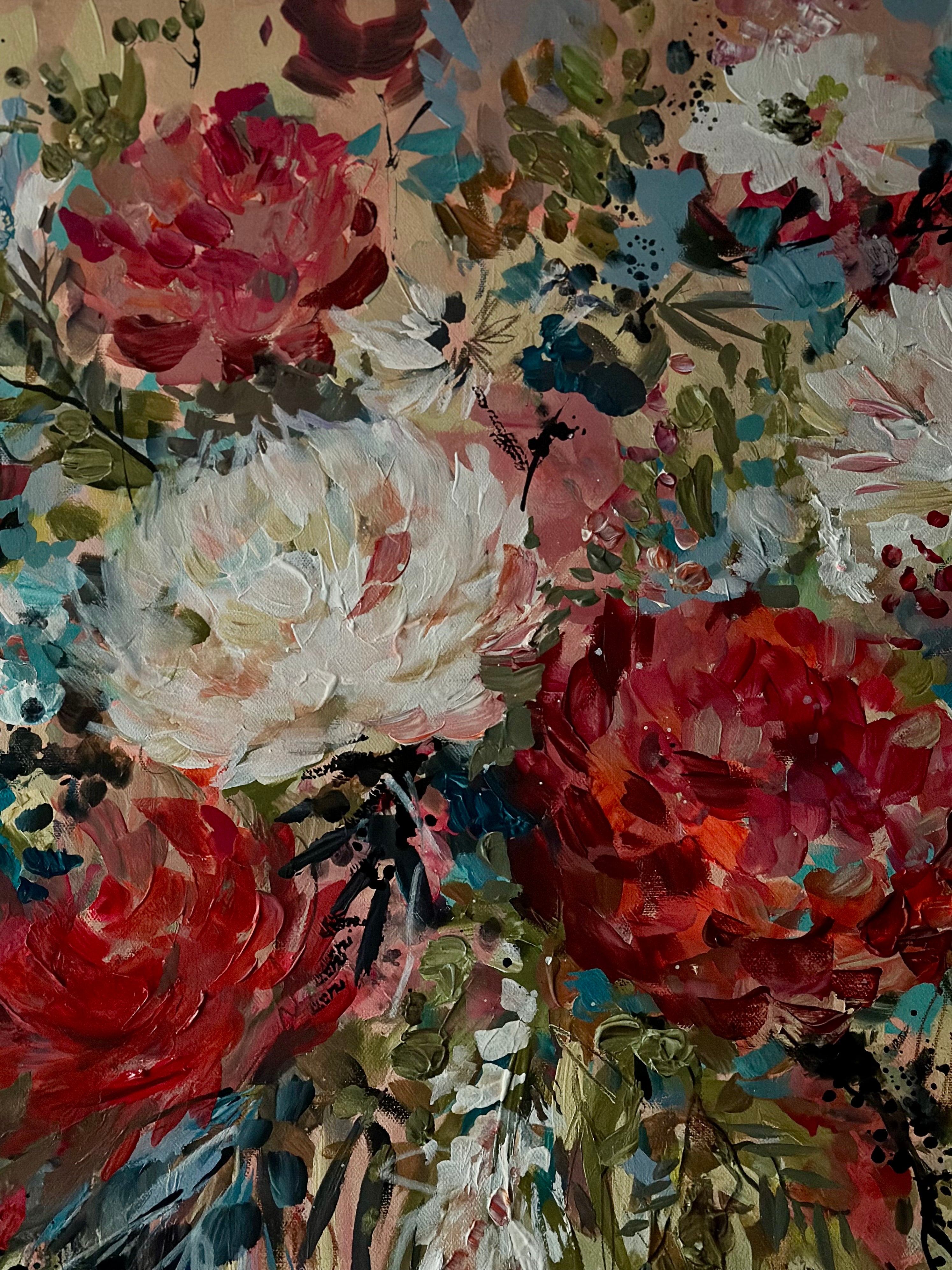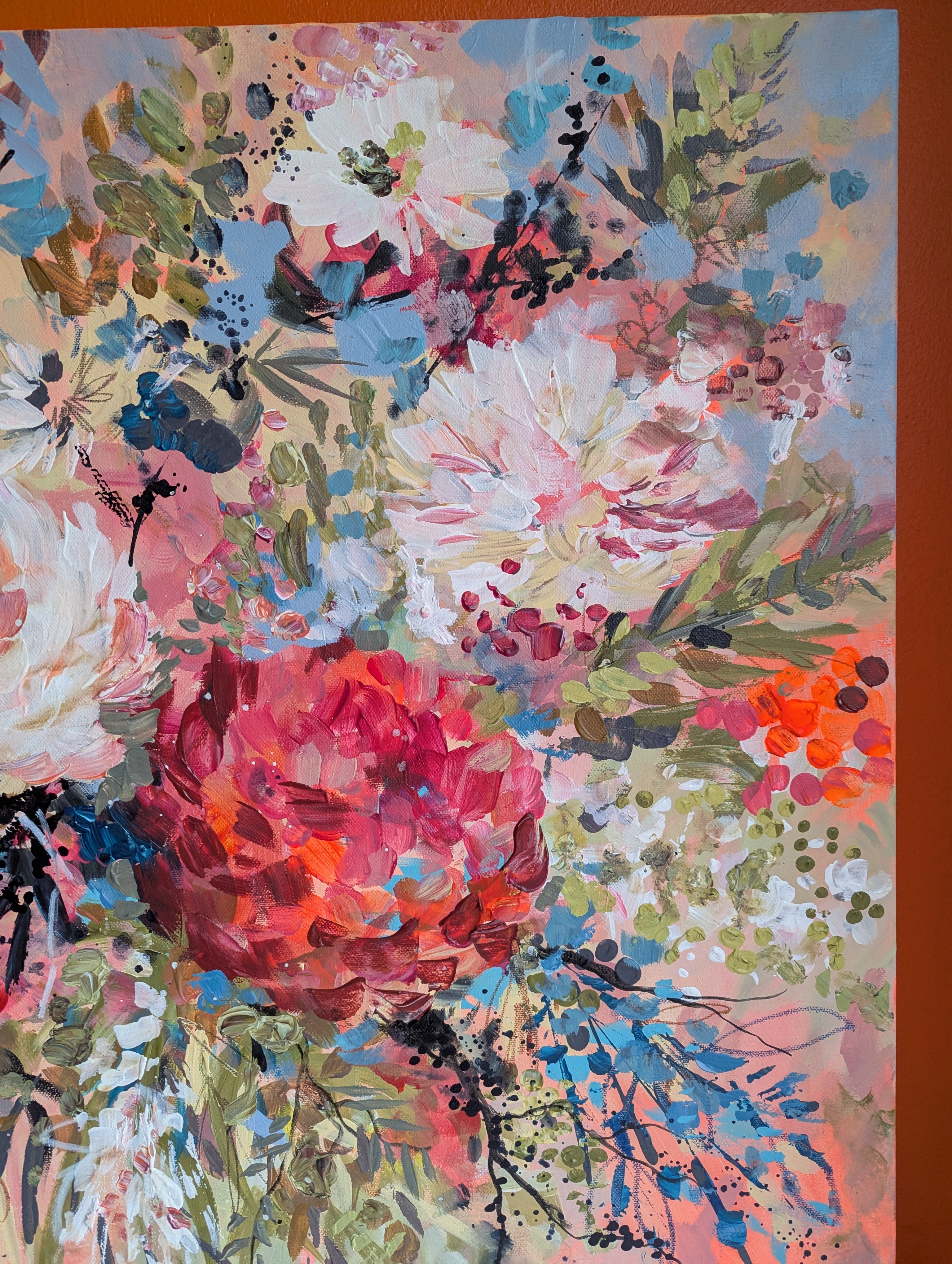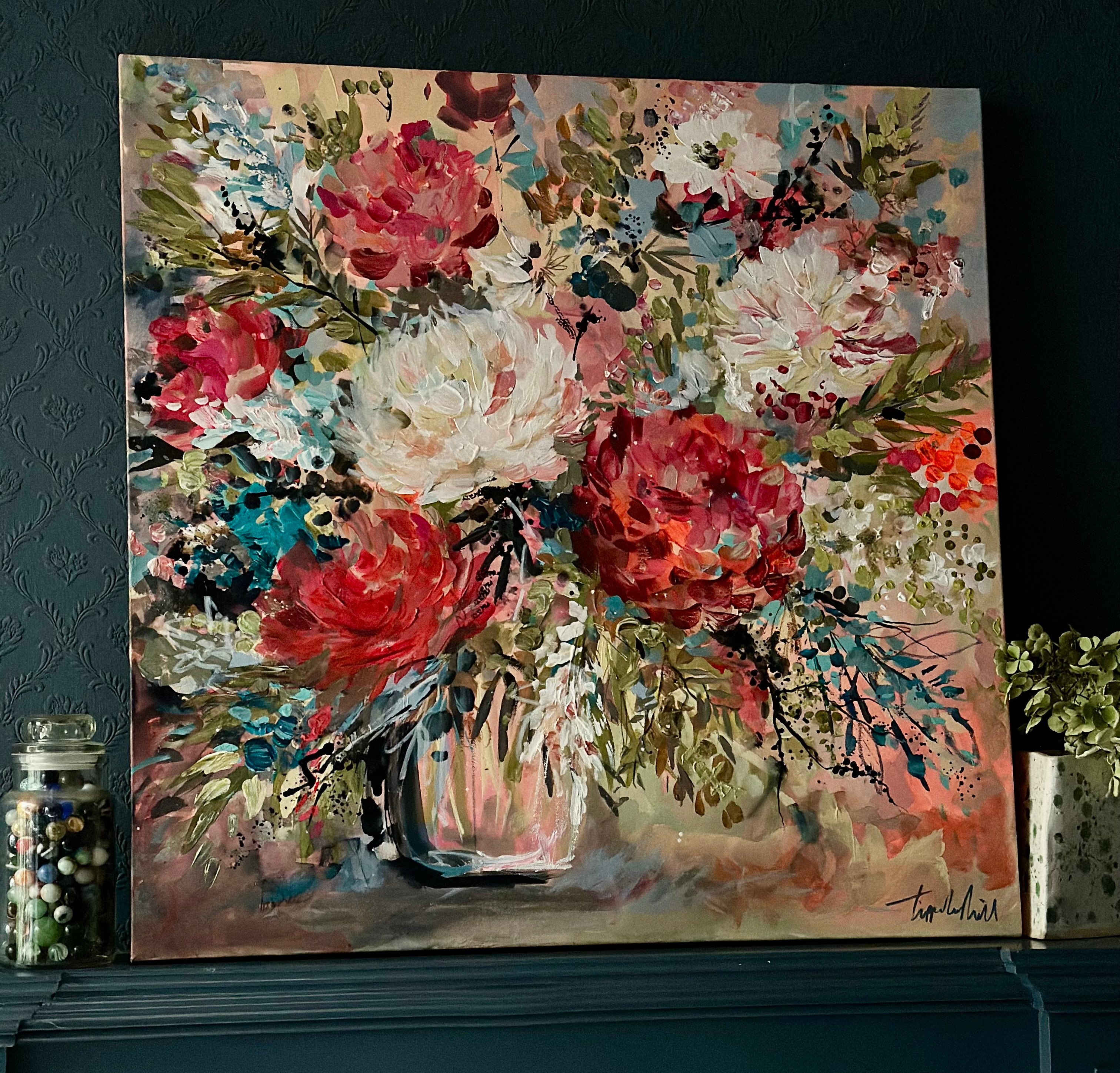 Abstract floral "Love is in Bloom" 70 x 100cm in deep edge canvas