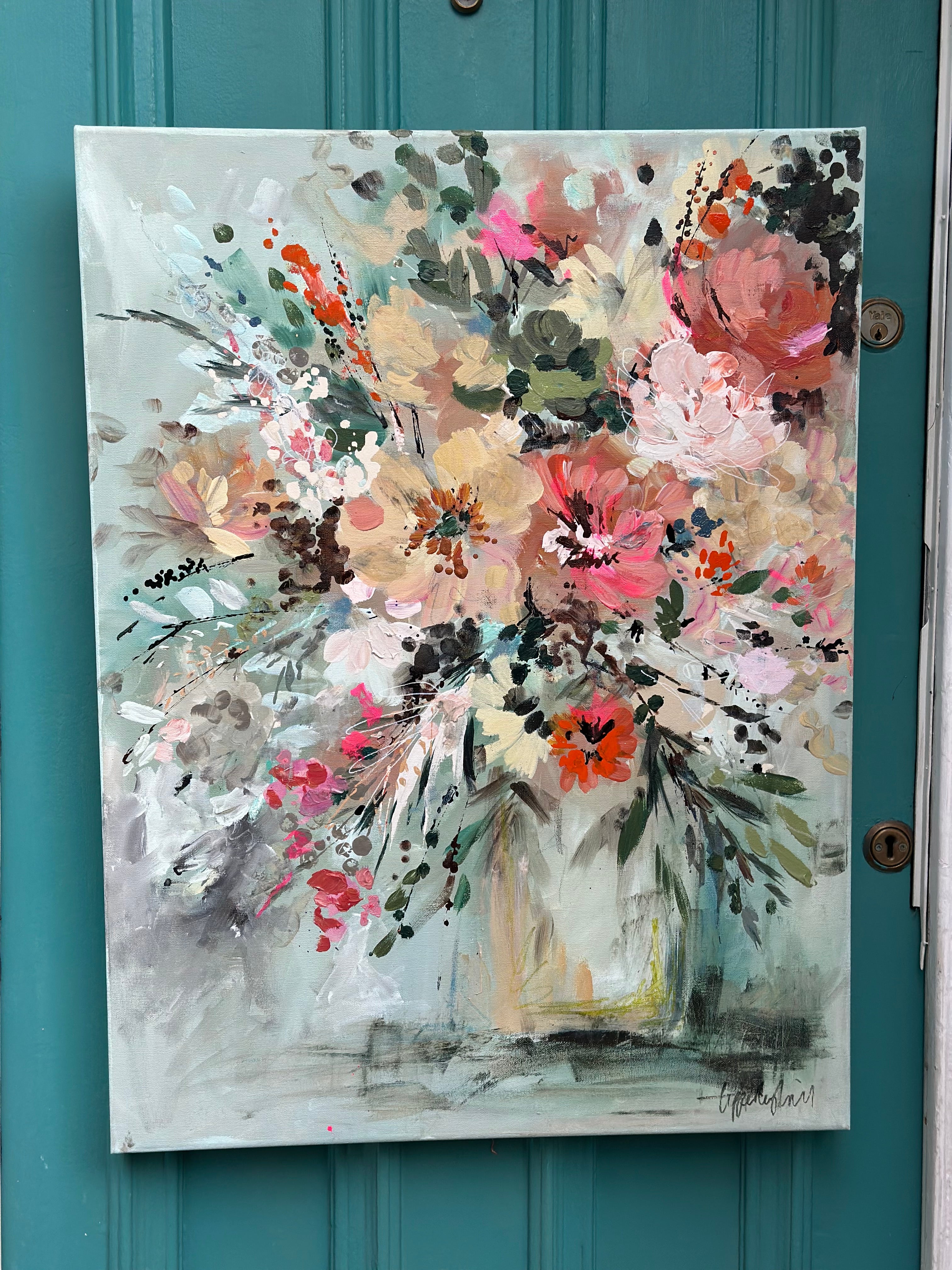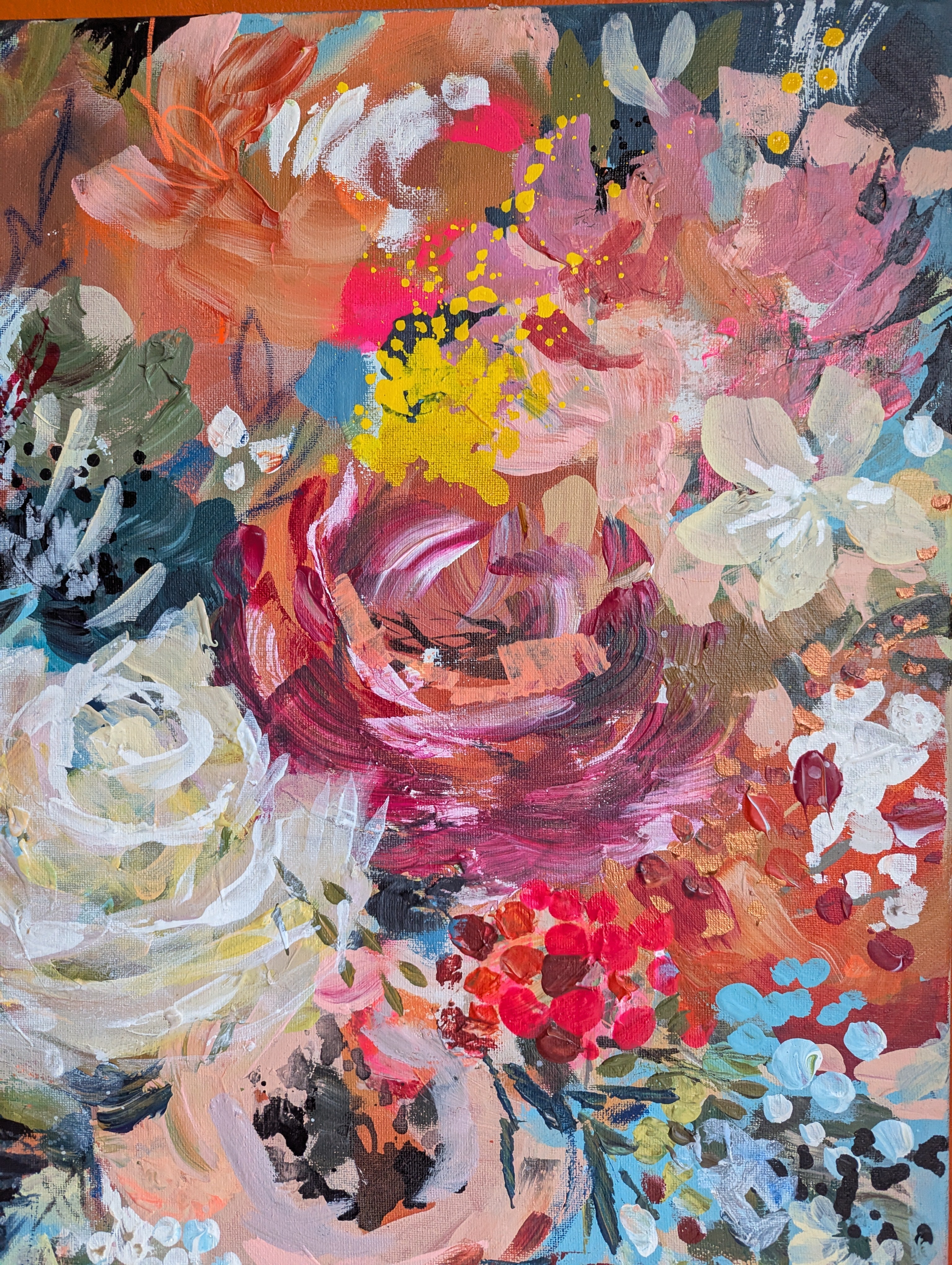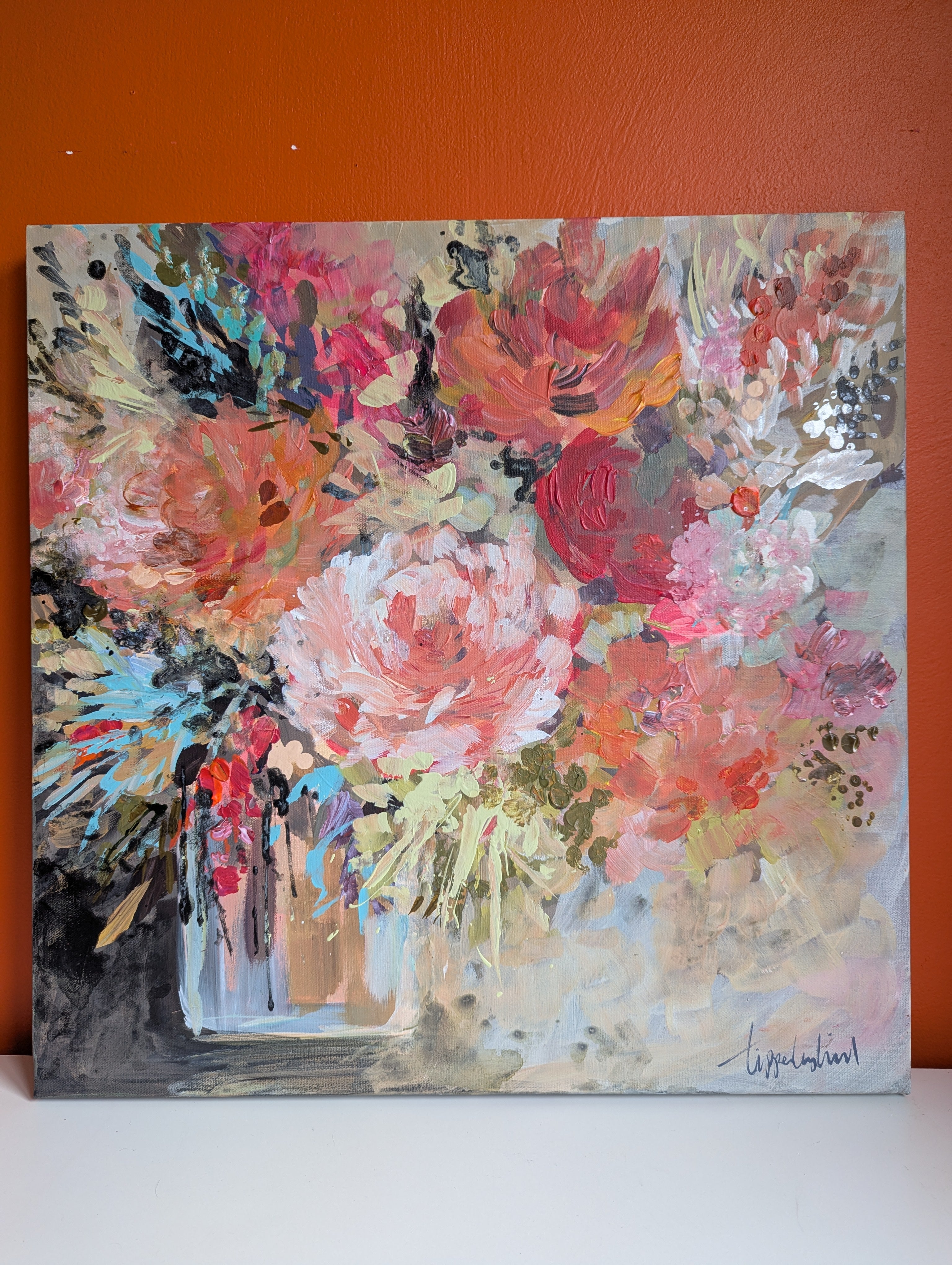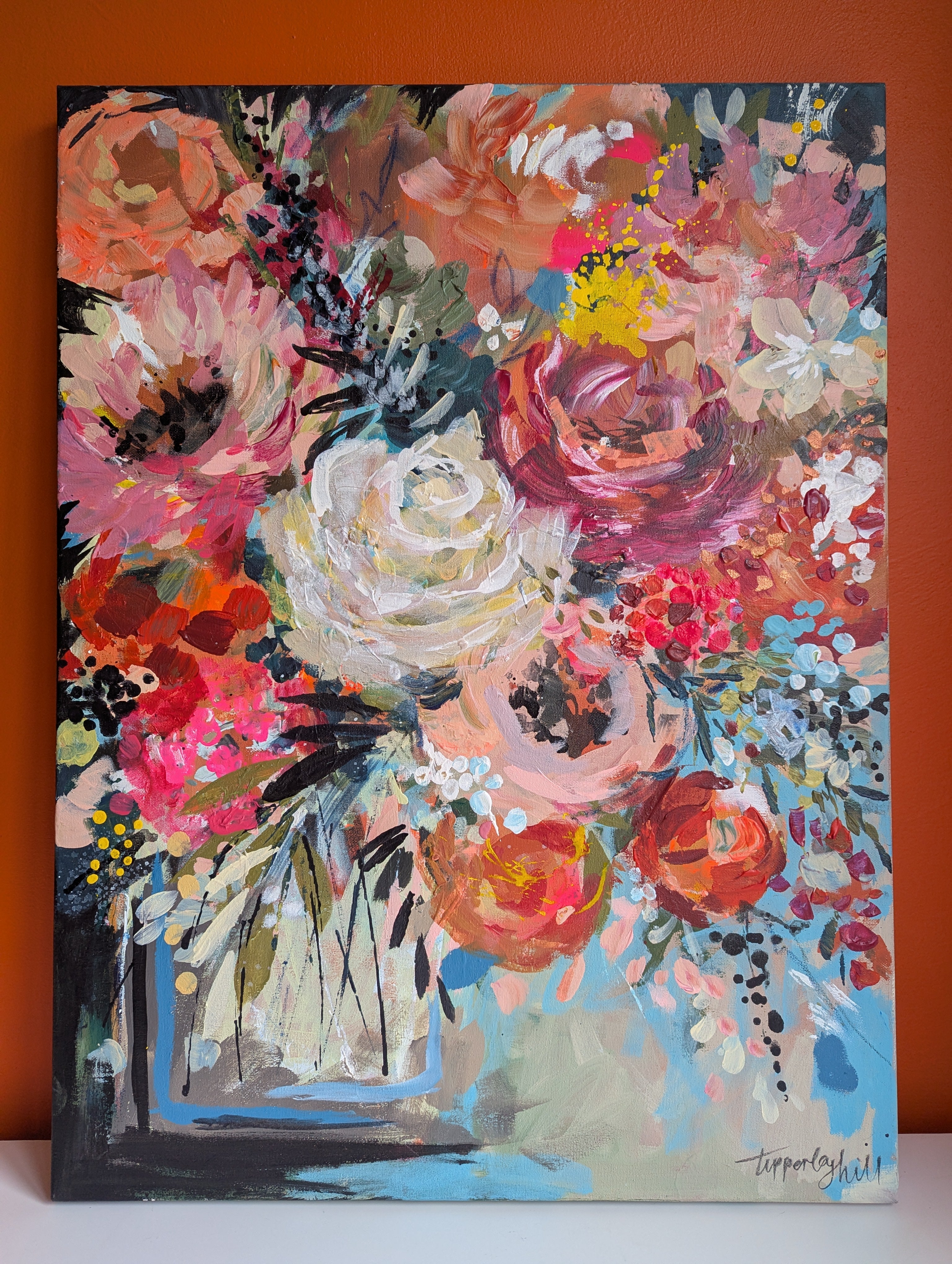 Abstract floral "Love is in Bloom" 70 x 100cm in deep edge canvas