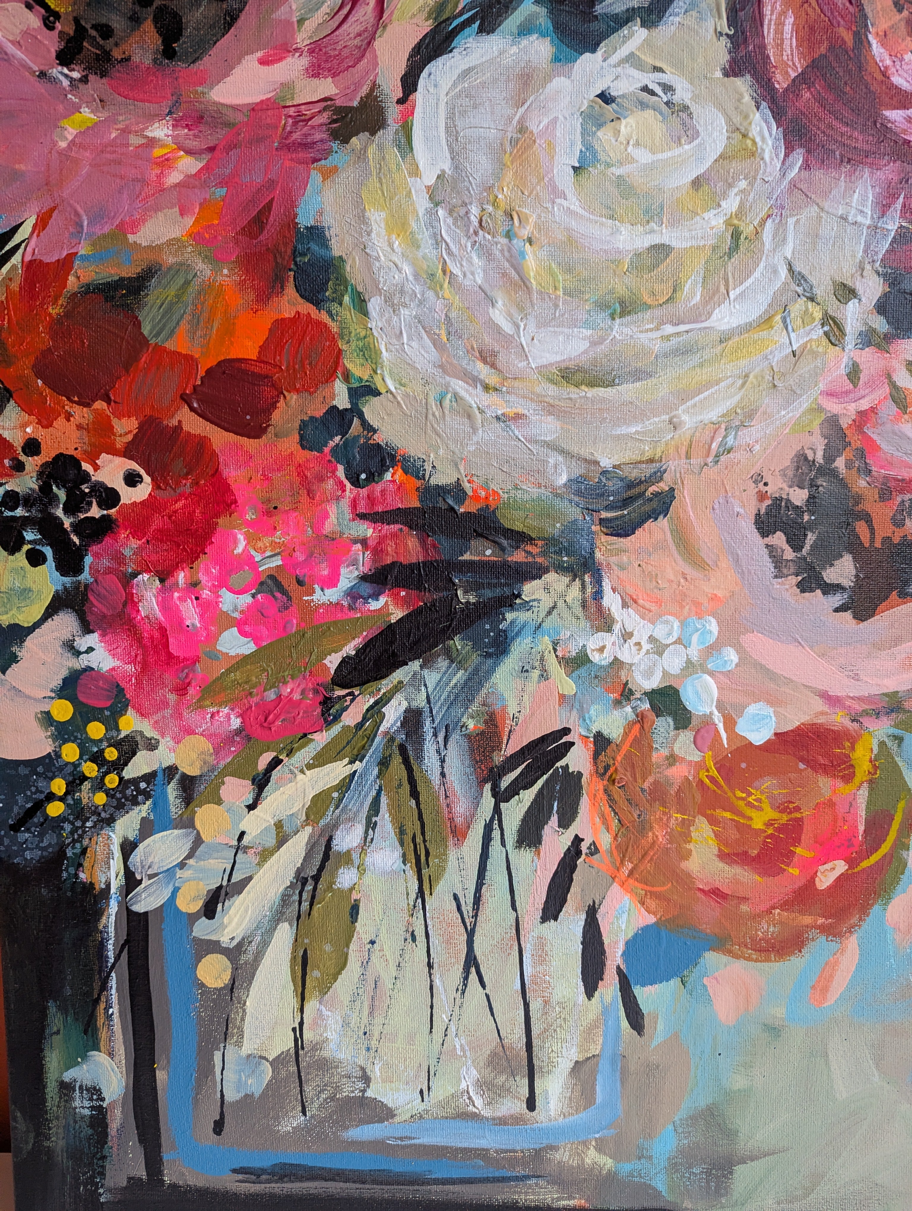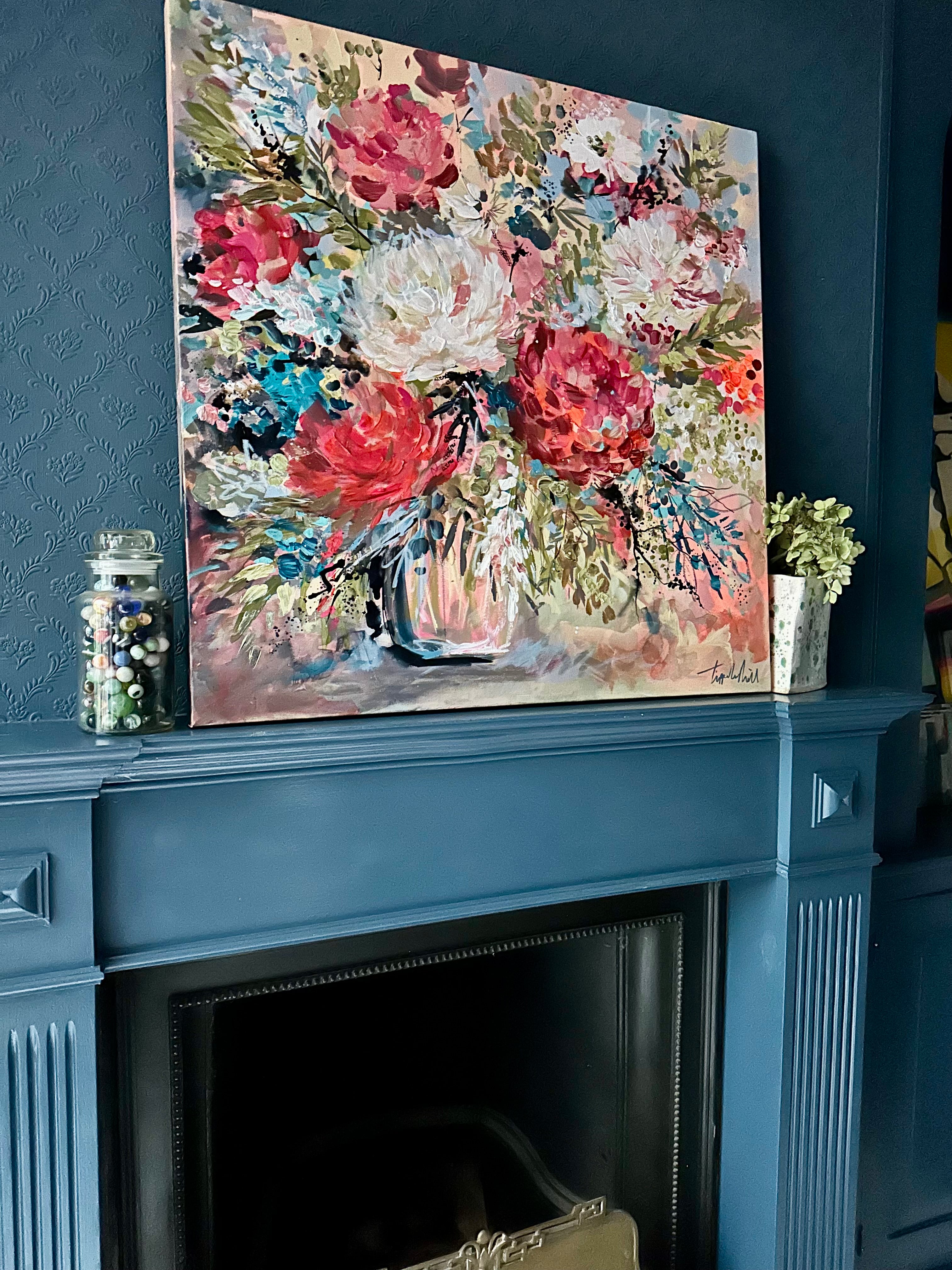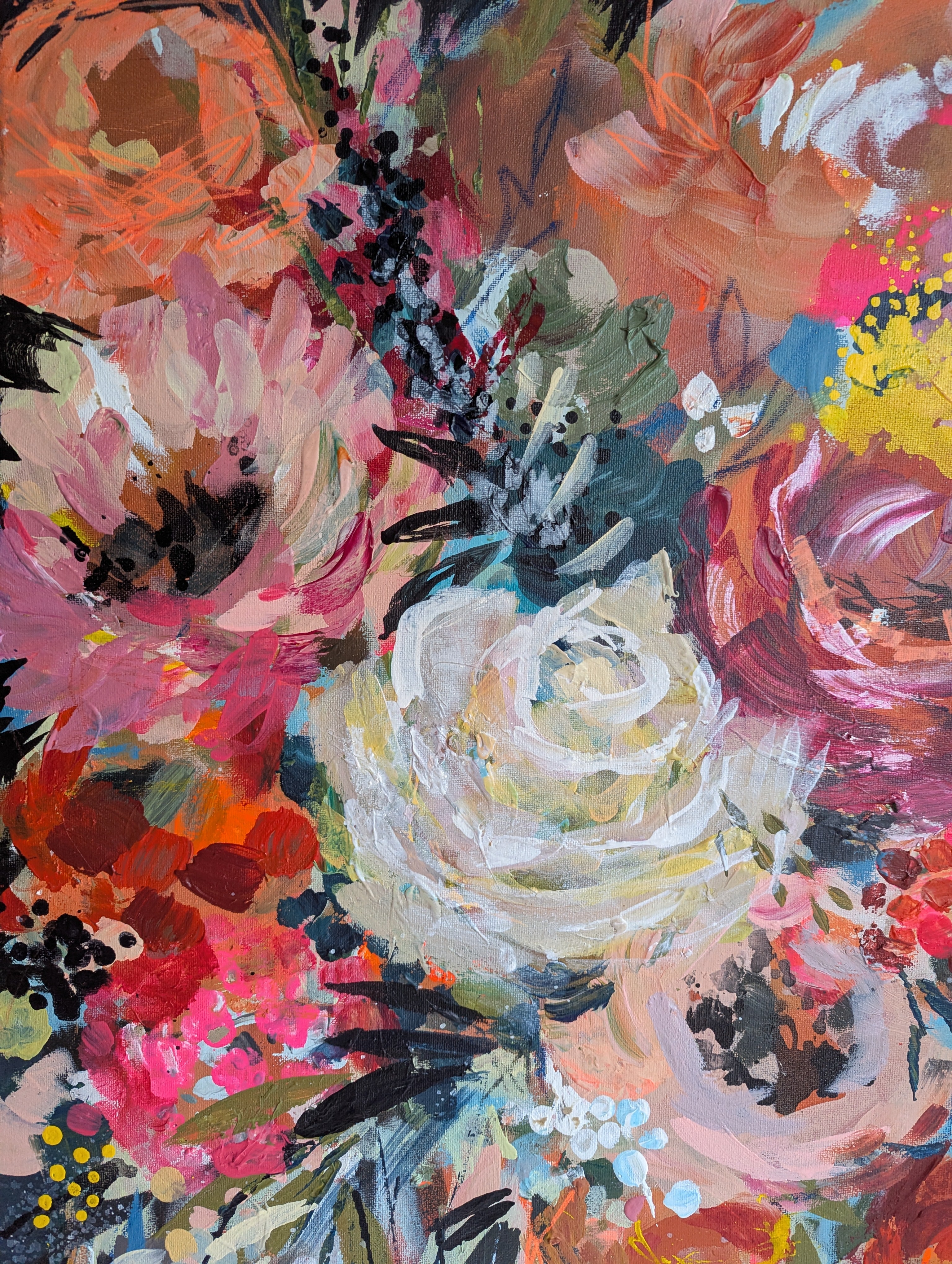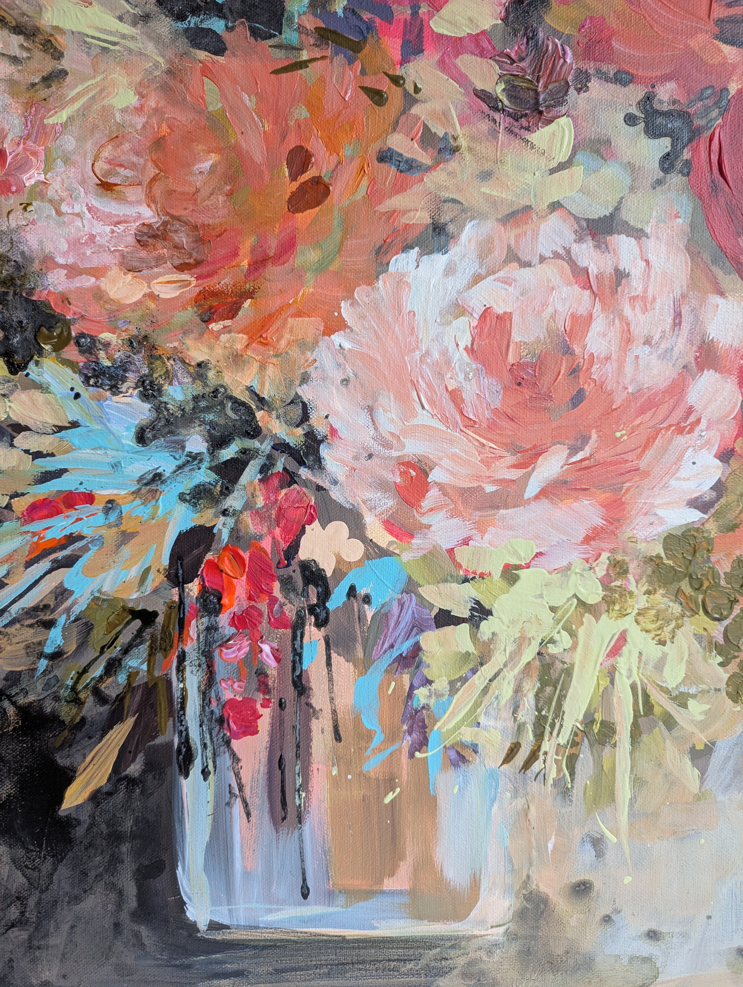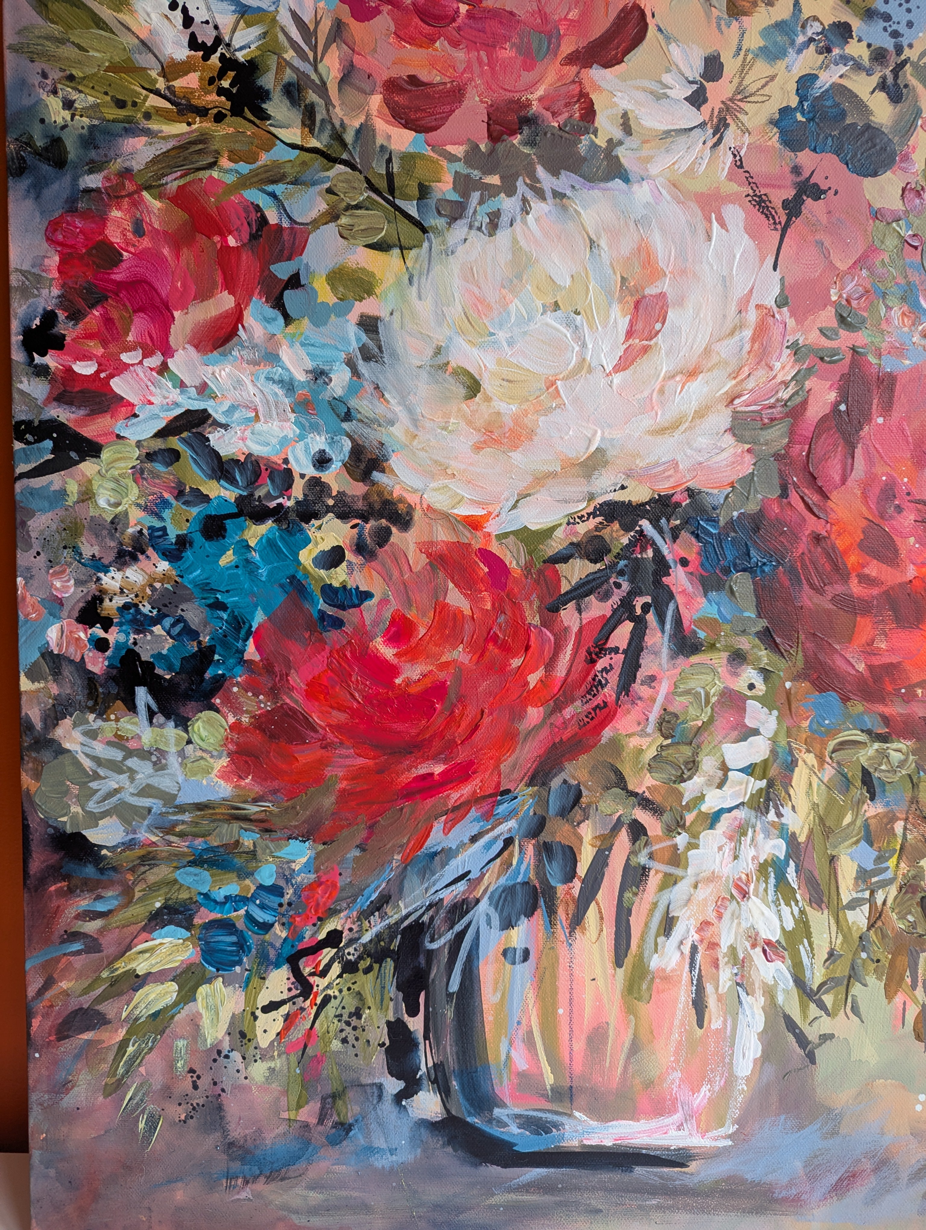 Abstract floral "Love is in Bloom" 70 x 100cm in deep edge canvas