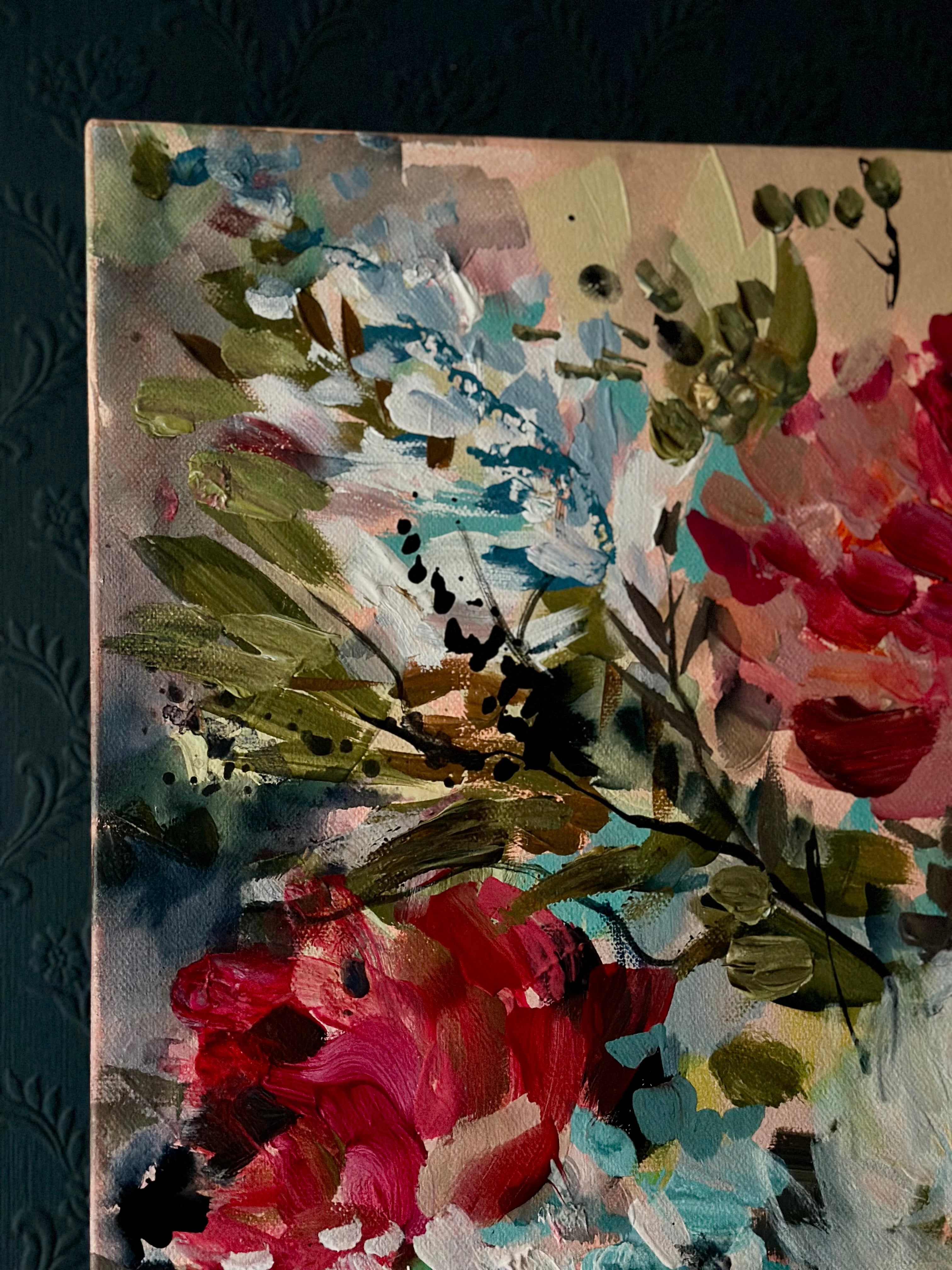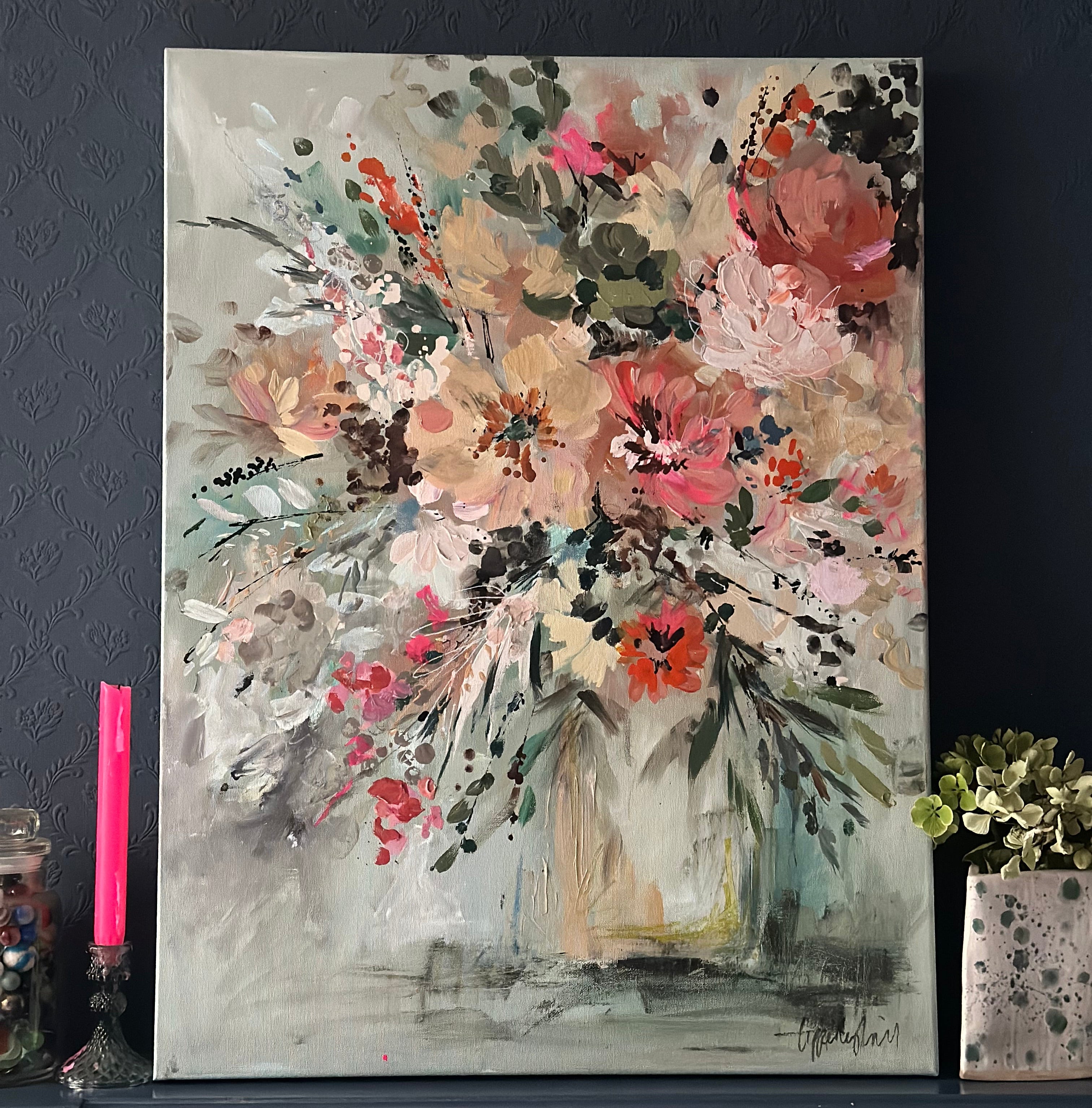 Abstract Floral "For the love" 60 x 80cm in deep edge canvas