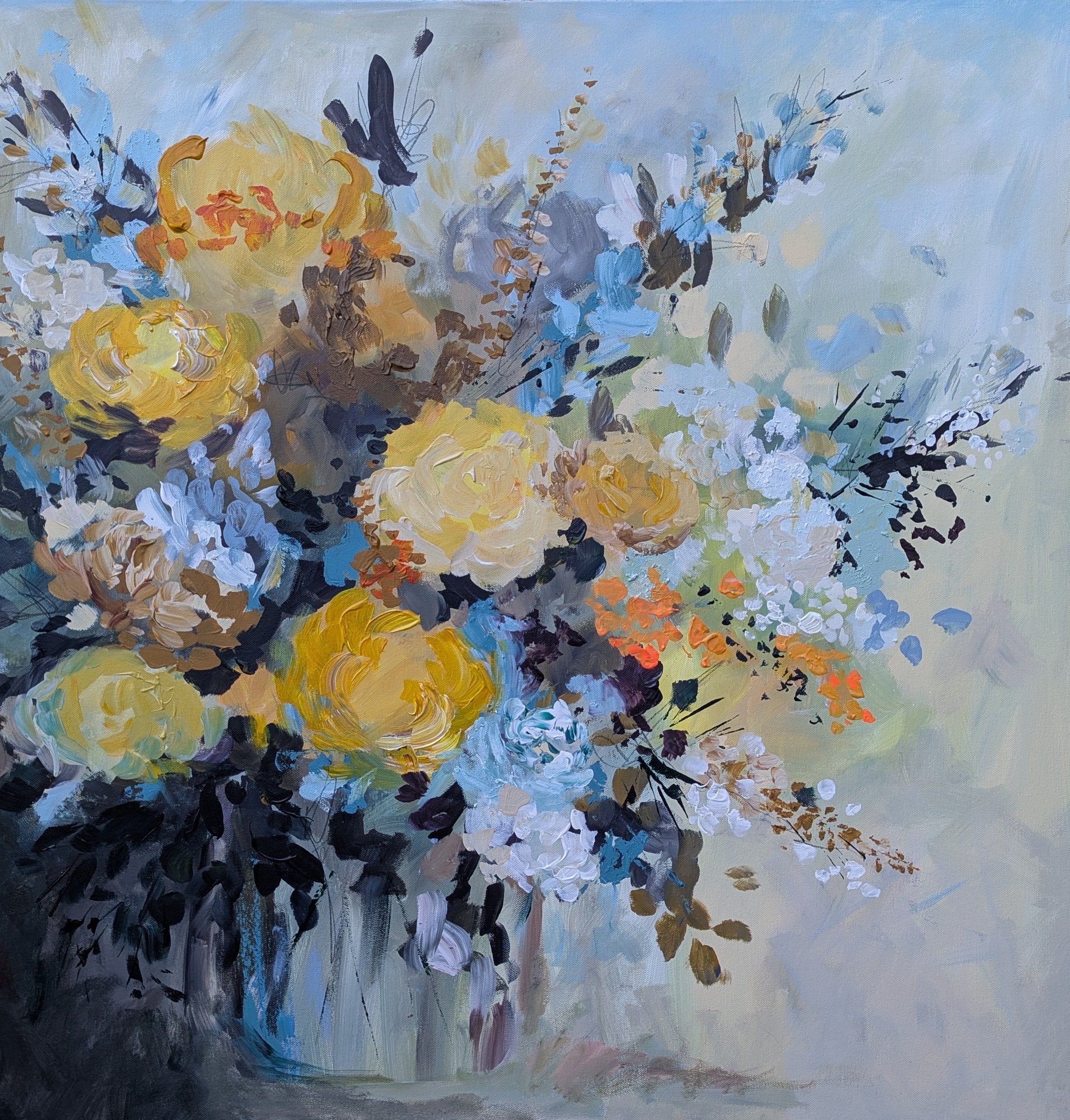 Abstract floral "Yellow in love" 100 x 100cm in deep edge canvas