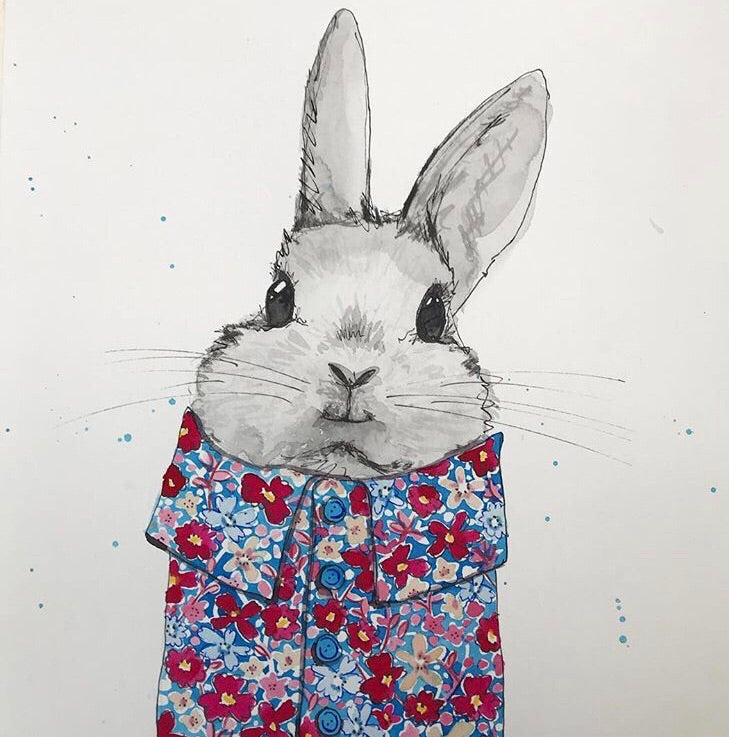 May is one of our new animal prints. Abi paints the animals and then posts the artwork off to Roz in London and she paints the patterned shirts.