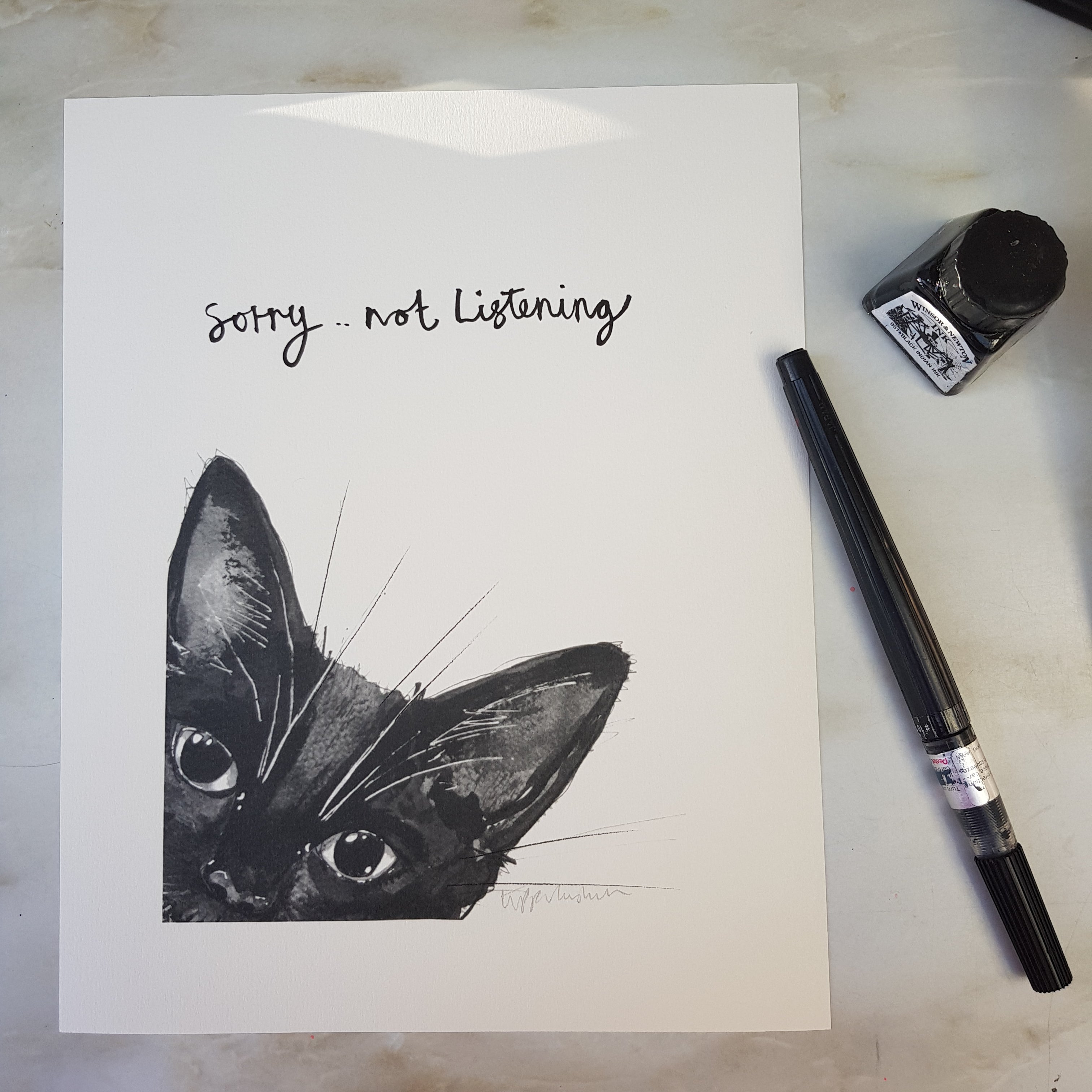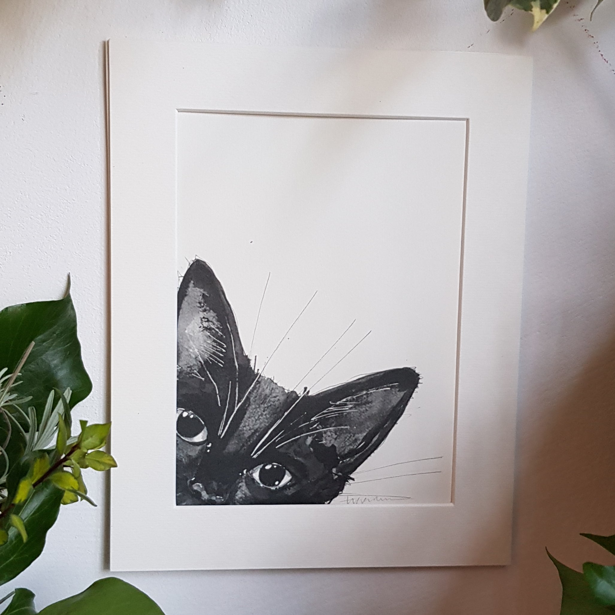 How can you resist this feline cutie? This is a high quality giclee print 8×10 it will fit into a shop bought frame. This print comes with soft white mount and hand signed. It's unframed.