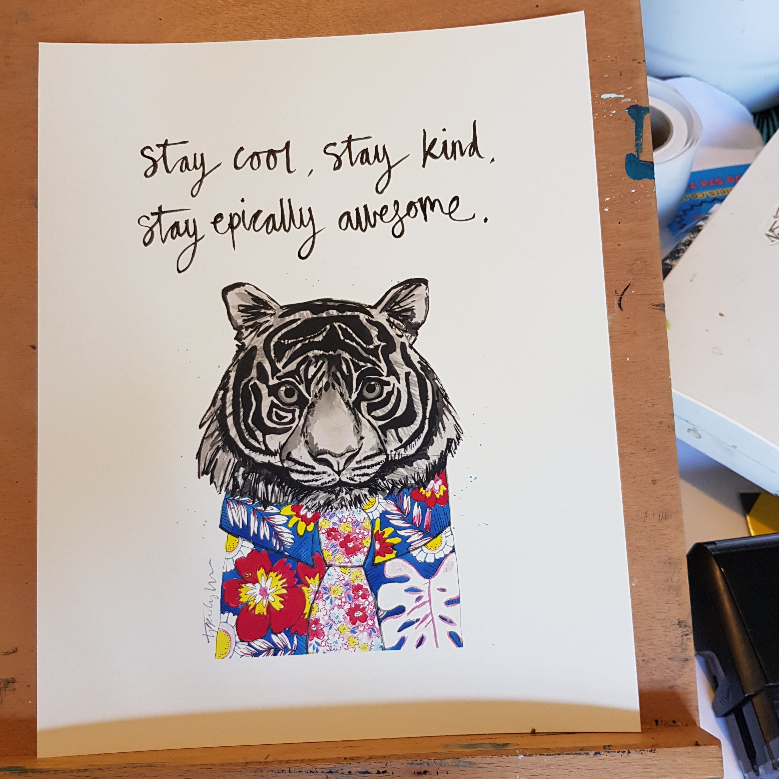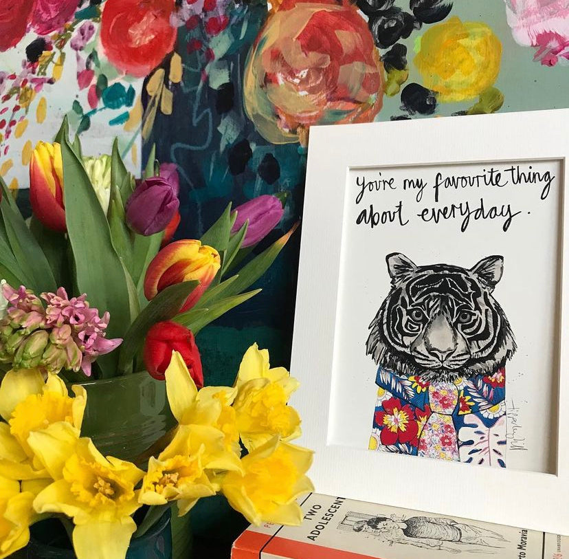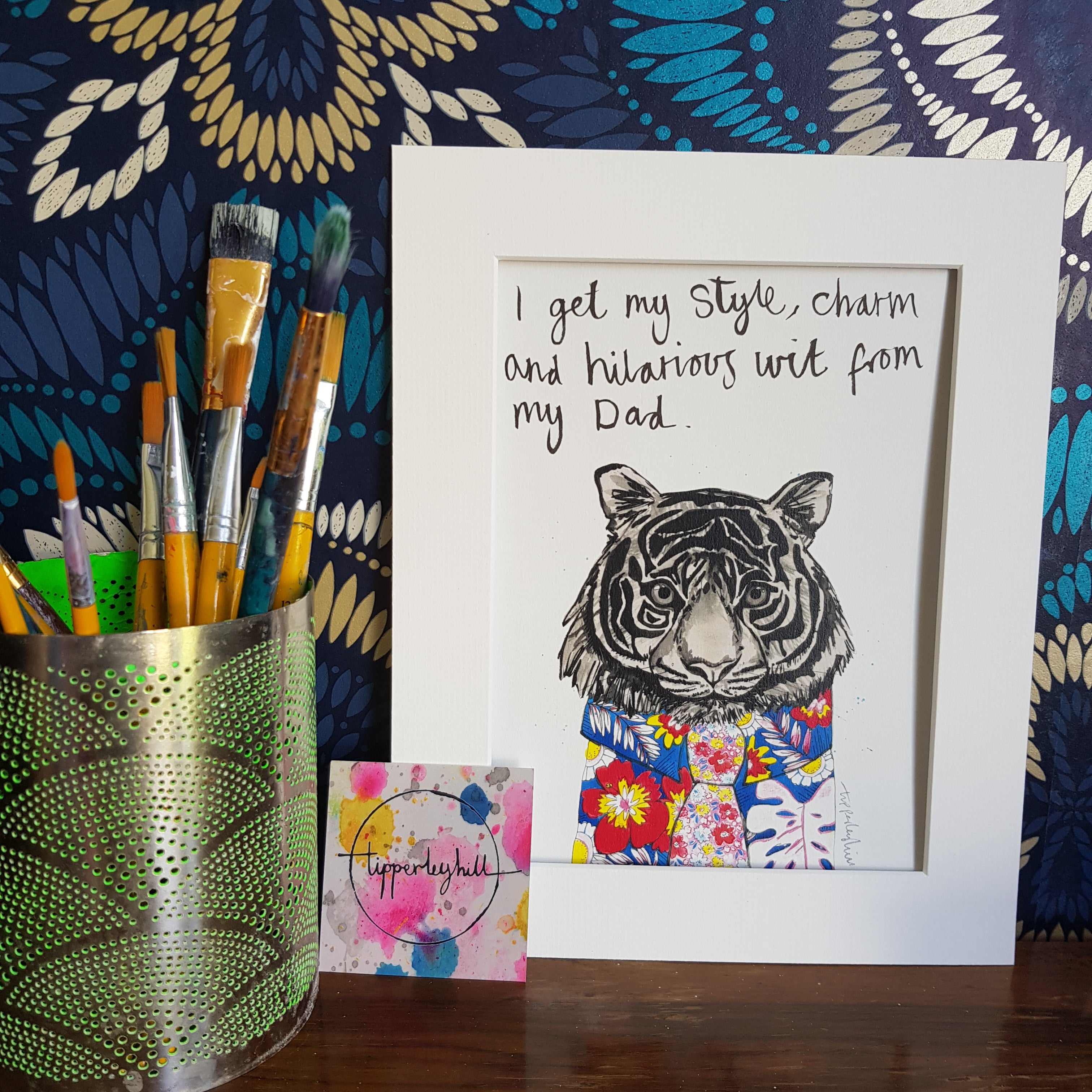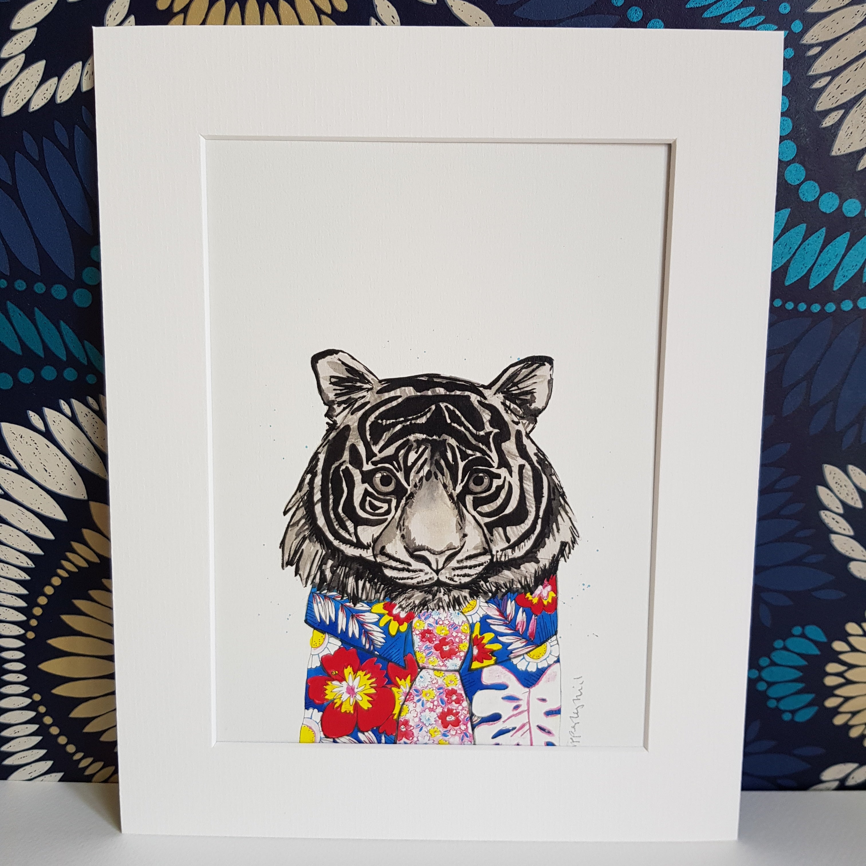 Tyrone is one of our new animal prints. Abi paints the animals and then posts the artwork off to Roz in London and she paints the patterned shirts.
