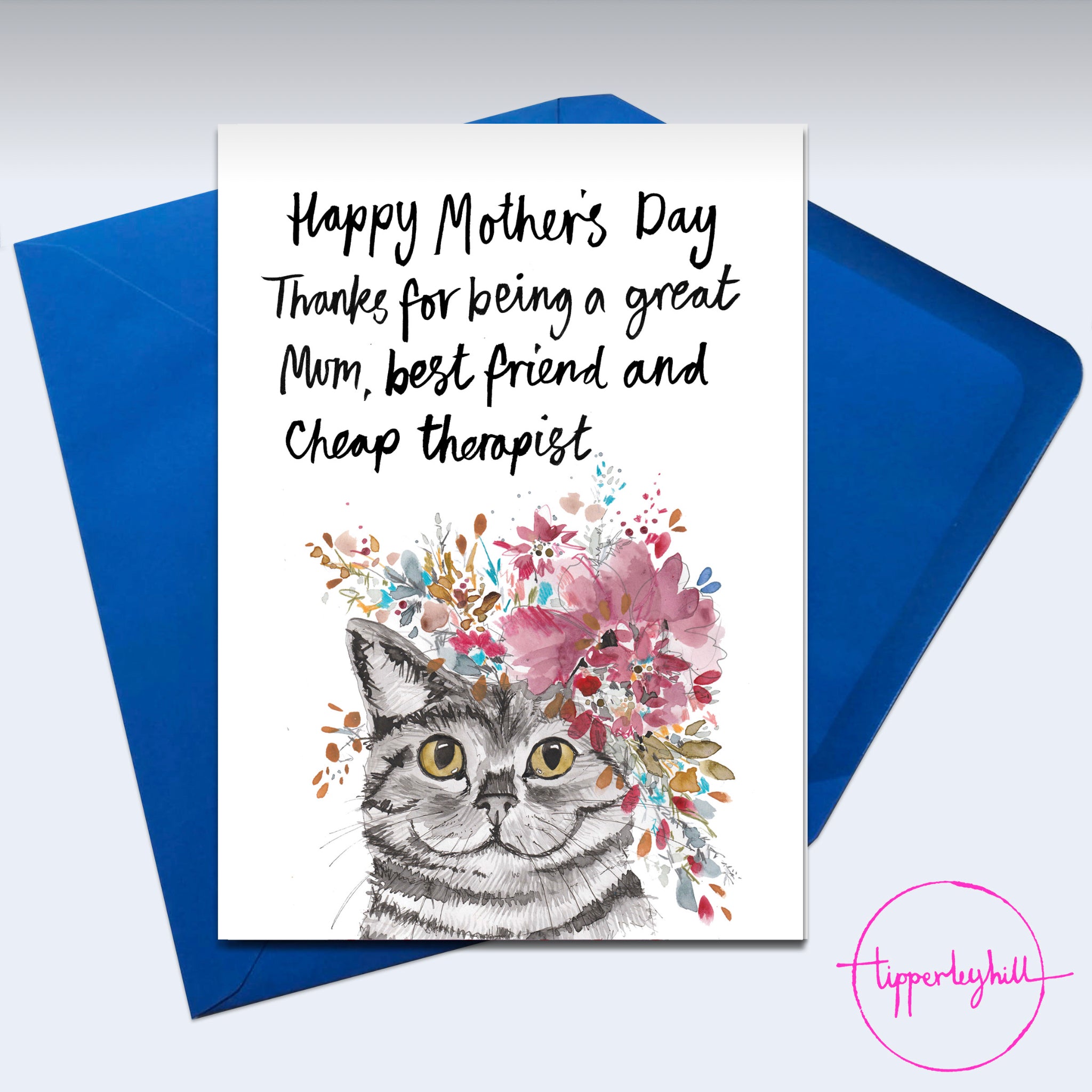 Card, AS45MDBEST, Storm the cat, ‘Happy Mothers Day. Thanks for being a great Mum, best friend and cheap therapist’