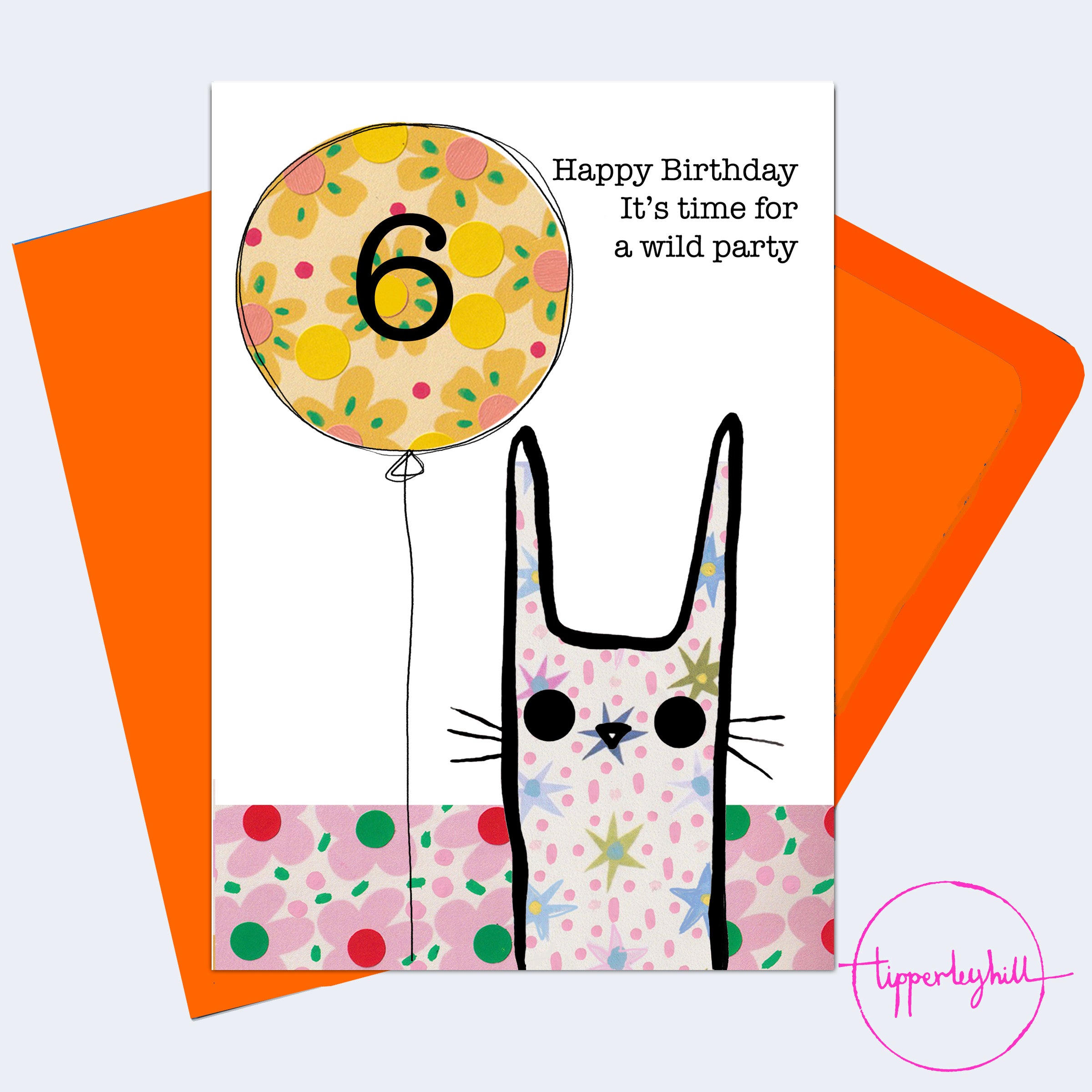 ‘Happy Birthday It’s time for a wild party’ 6th birthday greeting card comes with a 5” x 7” orange envelope wrapped in cellophane. The card inside is left blank to write your own message.