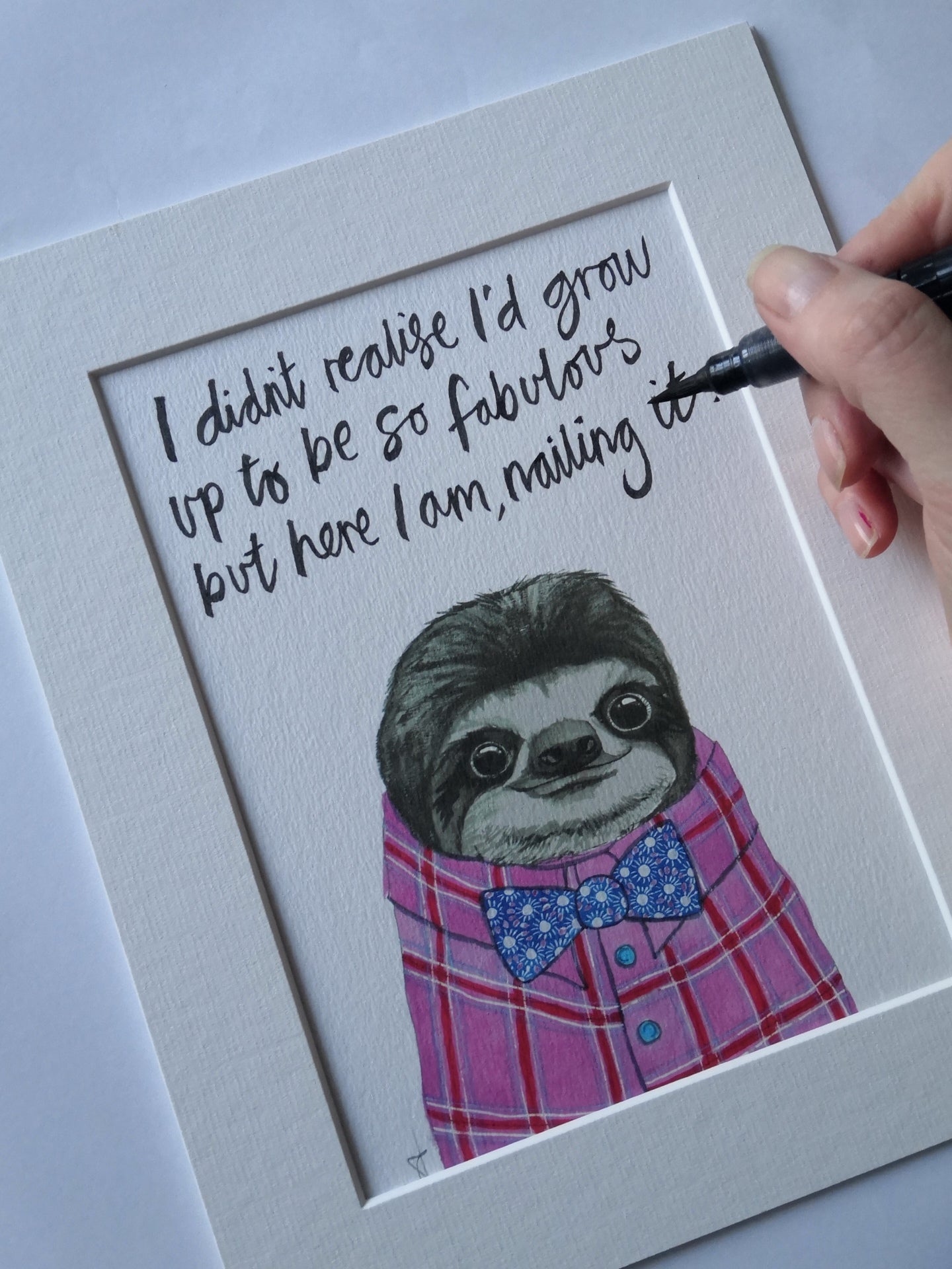 All our prints start off plain, you can add any phrase or quote you like in the personalisation box and Abi will hand write it on the print for you and post it off.