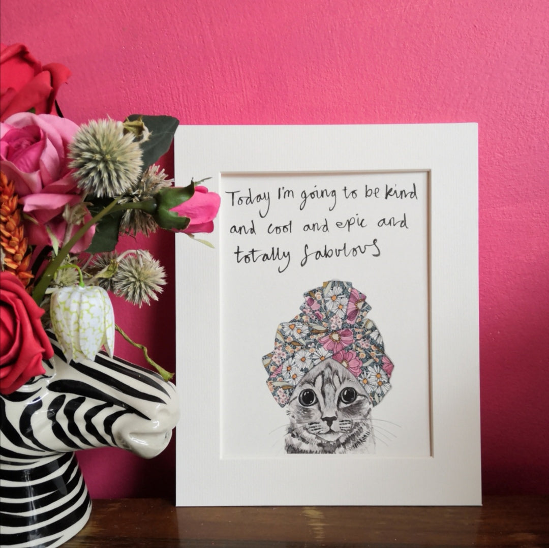This is Kevin the cat, owned by one of our lovely stockists, Mon Amie Living in Kibworth. Kevin has a penchant for the exotic and thinks nothing of donning a turban on a night out on the tiles (but it has to be a floral print).