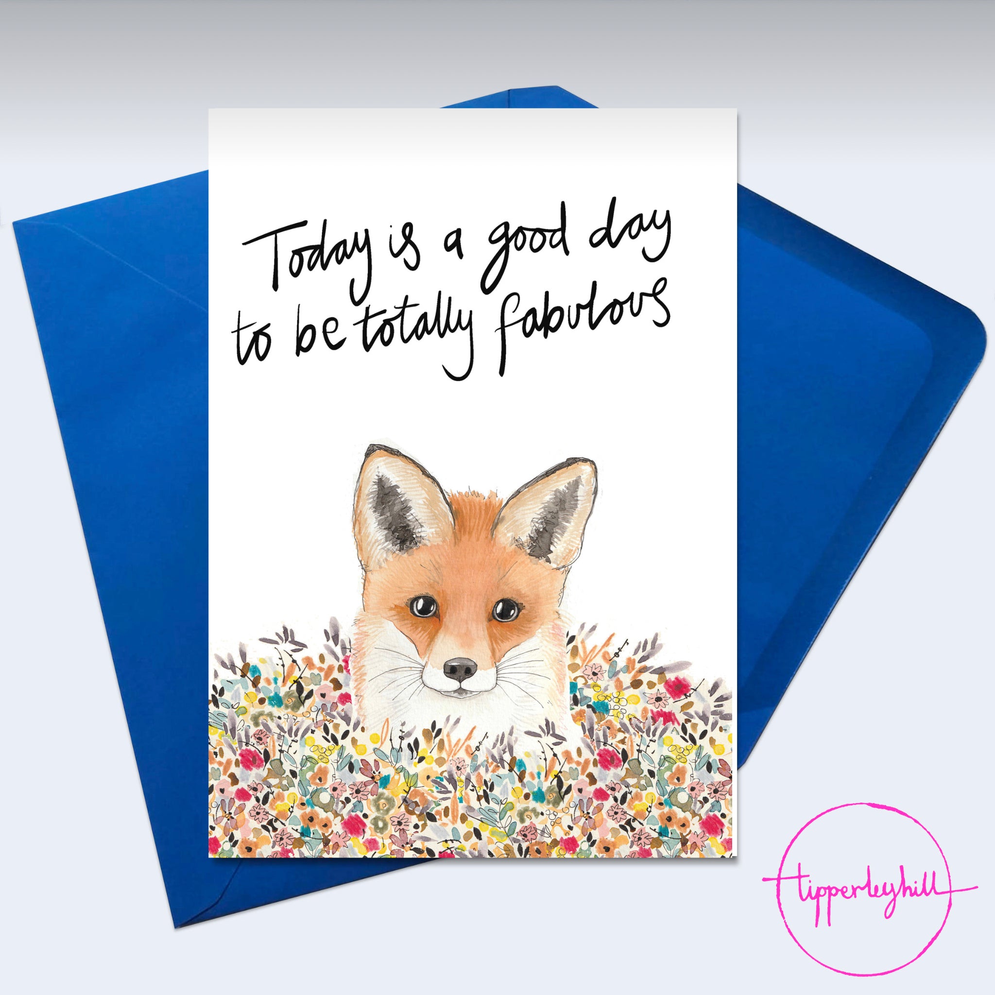 Each fox cub, ‘Today is good day to be totally fabulous’ greetings card comes with a 5” x 7” blue envelope wrapped in bio cello. The card inside is left blank to write your own message.