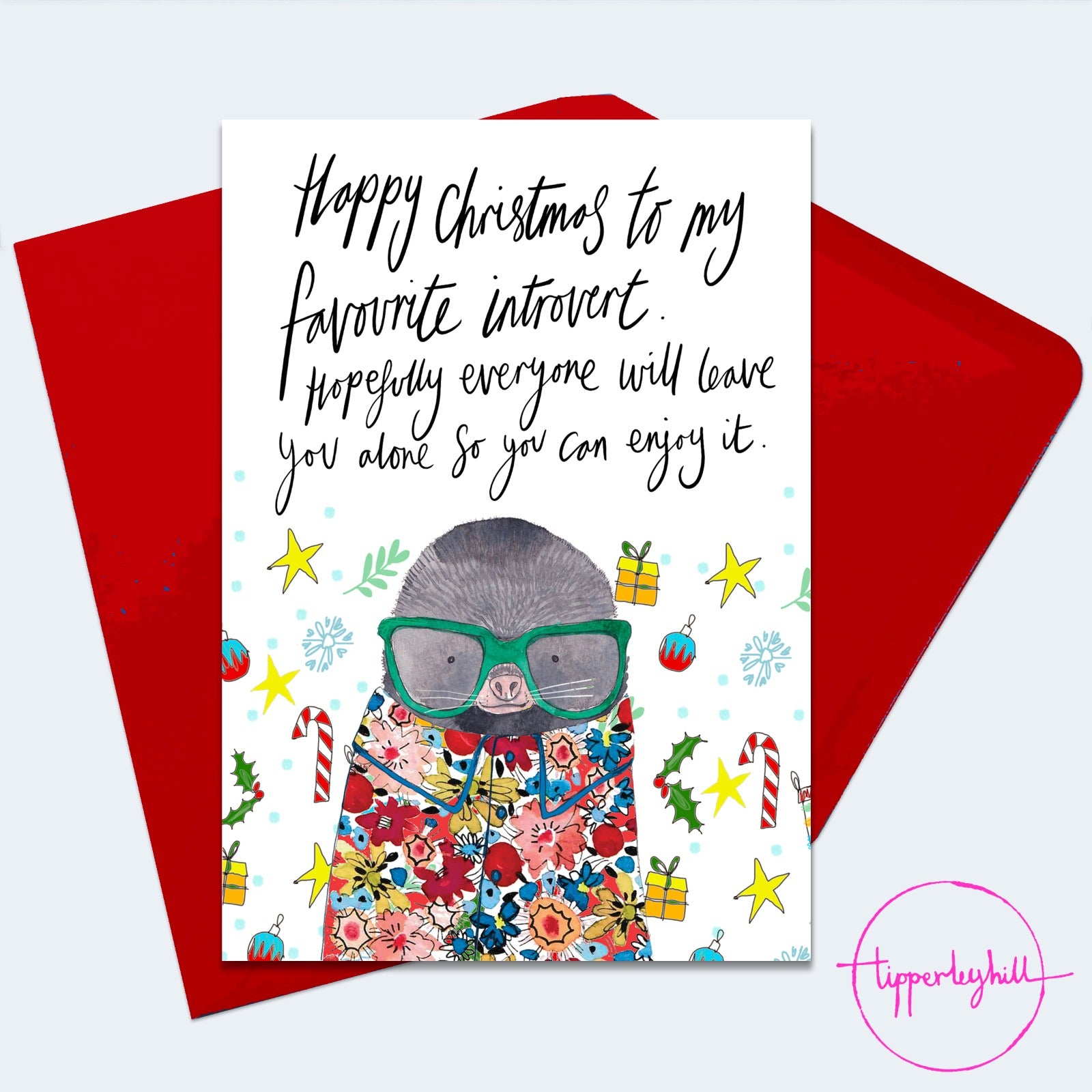 Christmas Card, XMAS22, Mole Christmas card, ‘Happy Christmas to my favourite introvert. Hopefully everyone will leave you alone so that you can enjoy it’