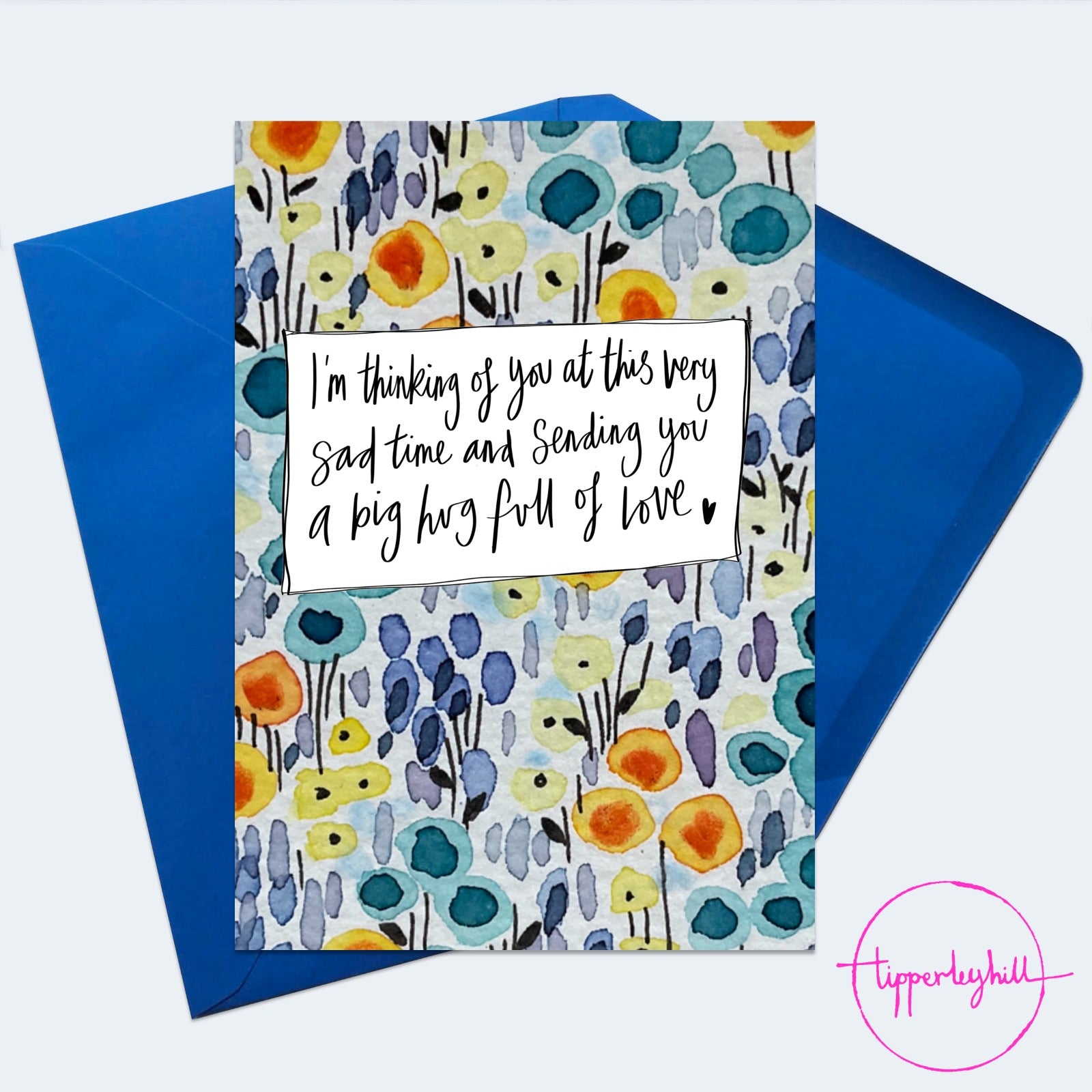 QU03, Quote card, ‘I’m thinking of you at this very sad time and sending you a big hug full of love’ greeting card