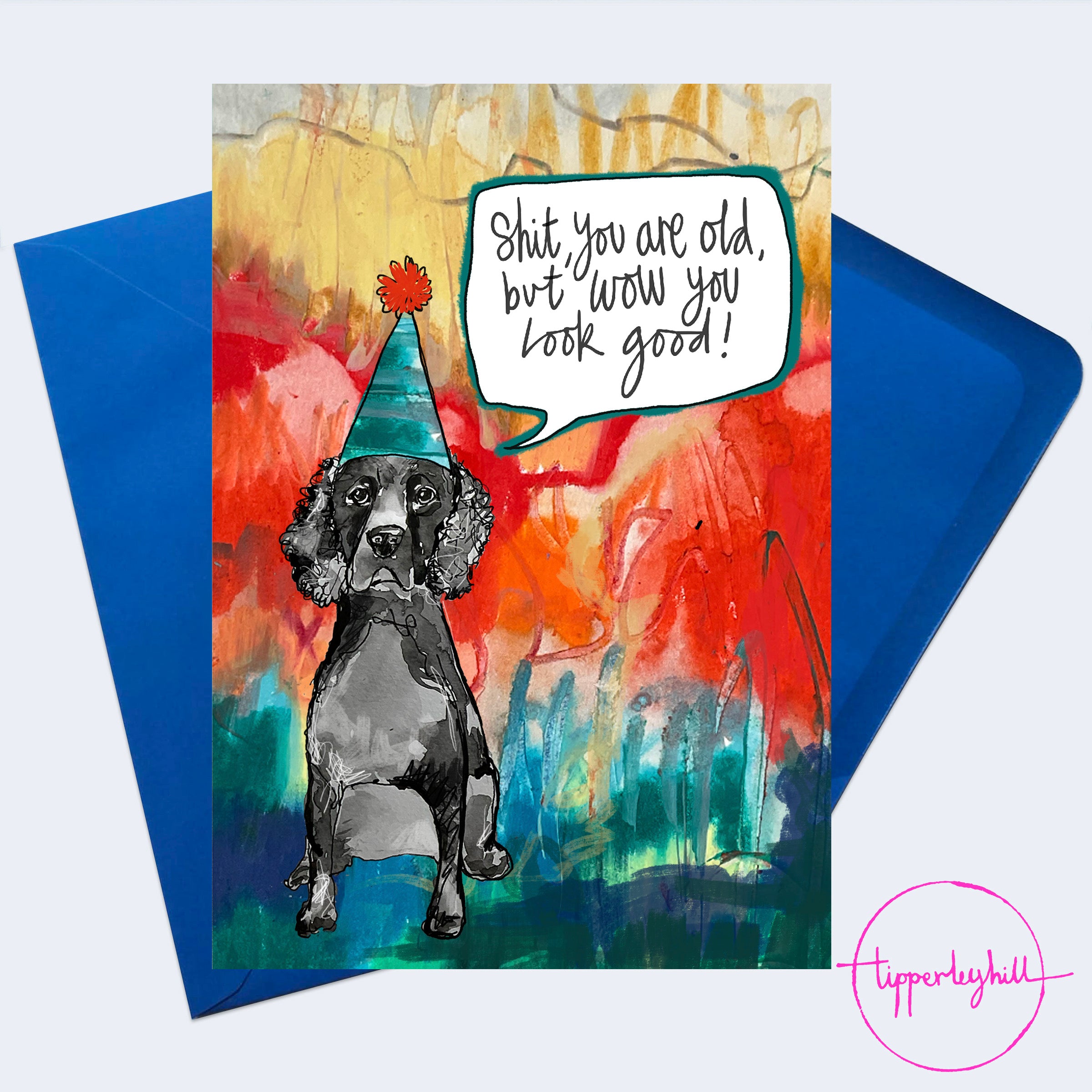 Each ’Sh*t you look old, but wow you look good’ greetings card comes with a 5” x 7” blue envelope wrapped in bio cello. The card inside is left blank to write your own message.