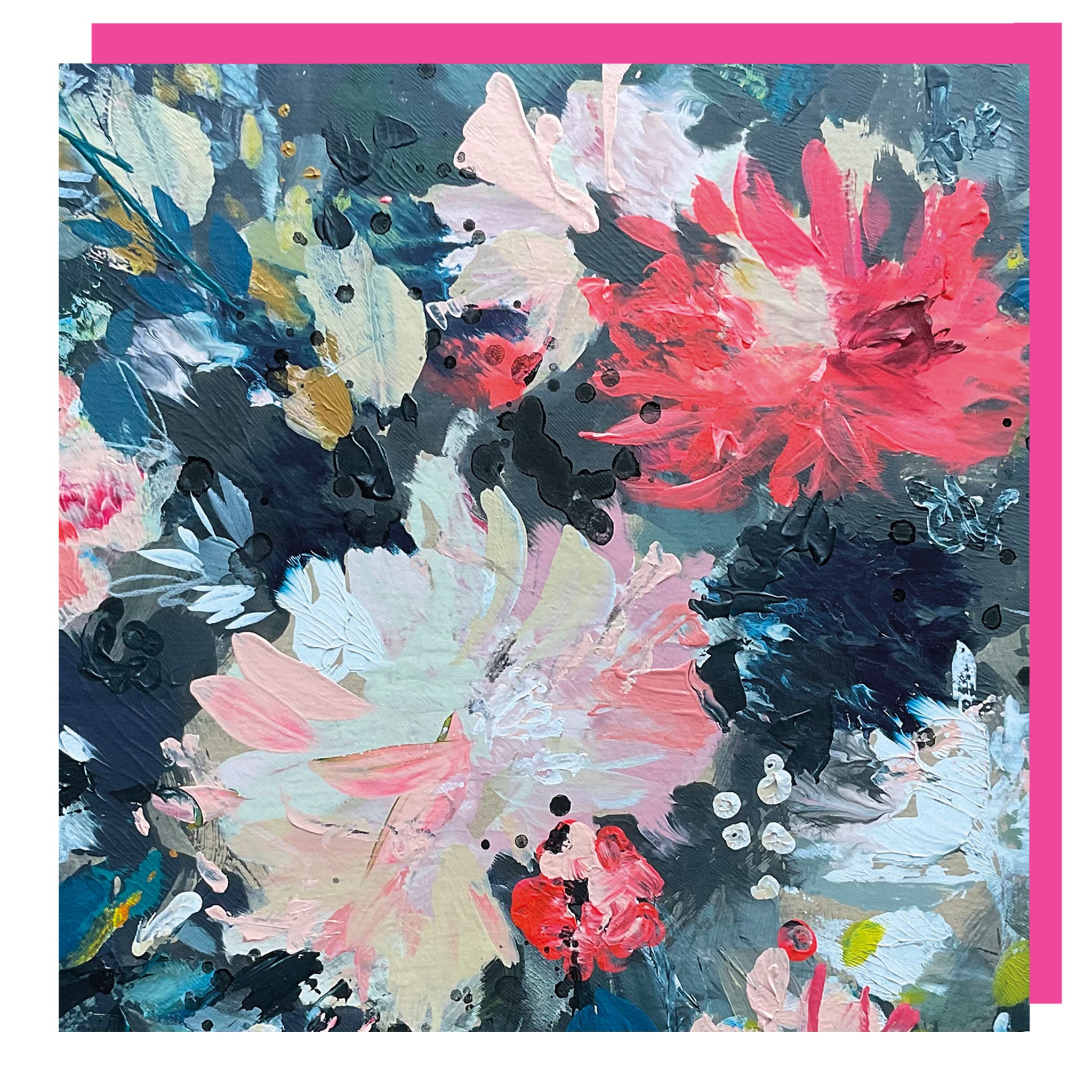 Each floral greetings card (15 x 15cm) comes with a pink envelope wrapped in cellophane. The card inside is left blank to write your own message.