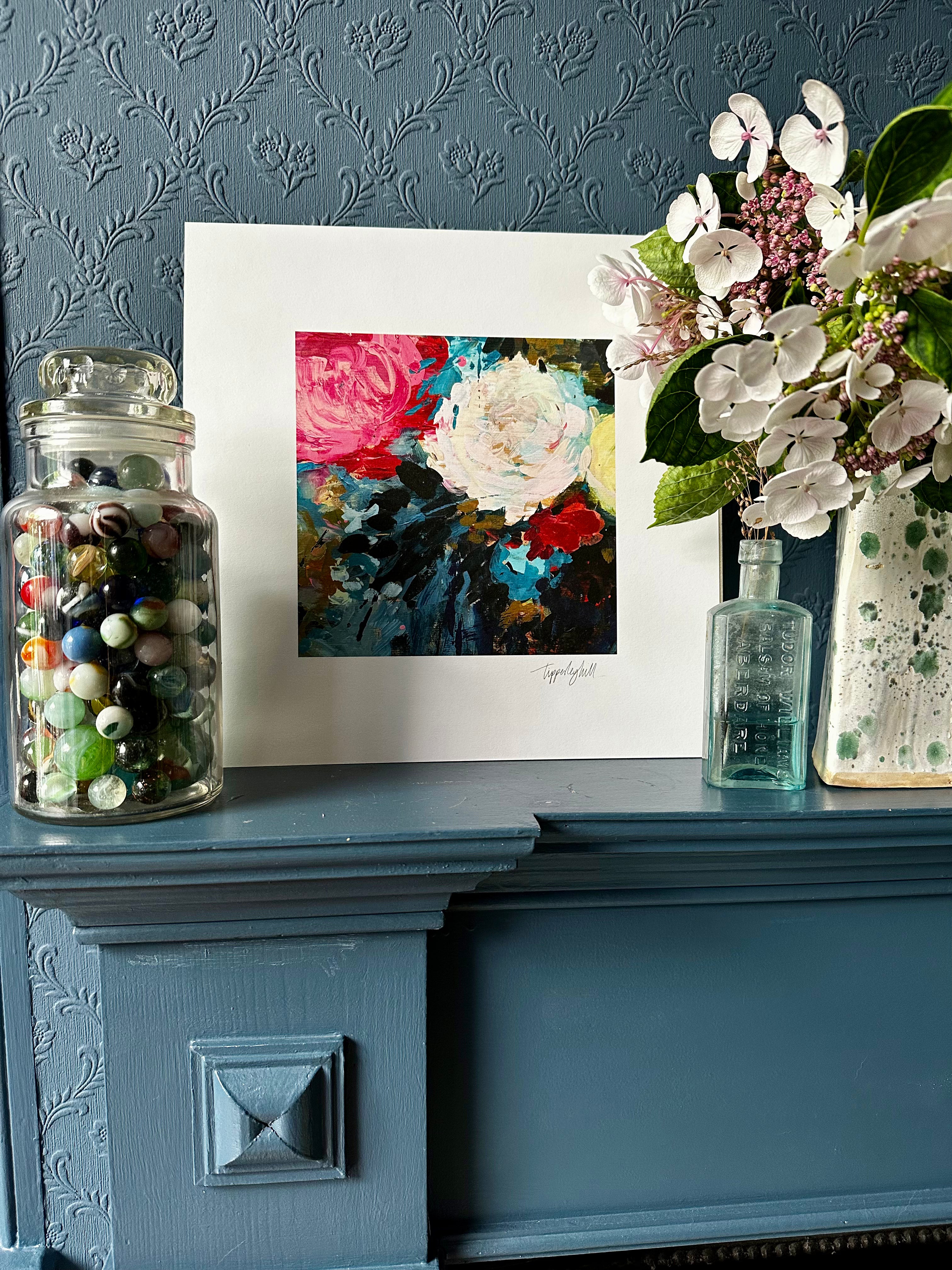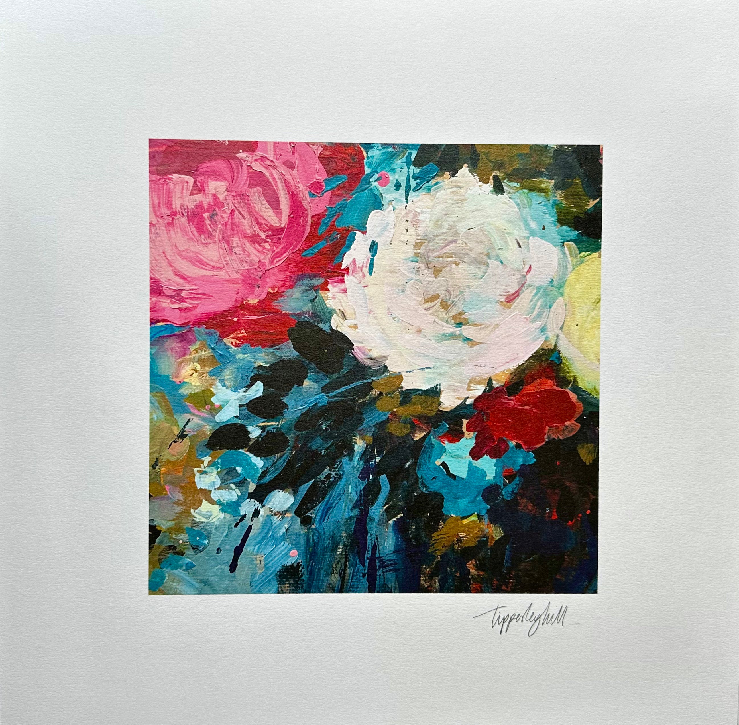 Floral art print, 30 x 30cm floral print, cardboard backed and wrapped in bio cello