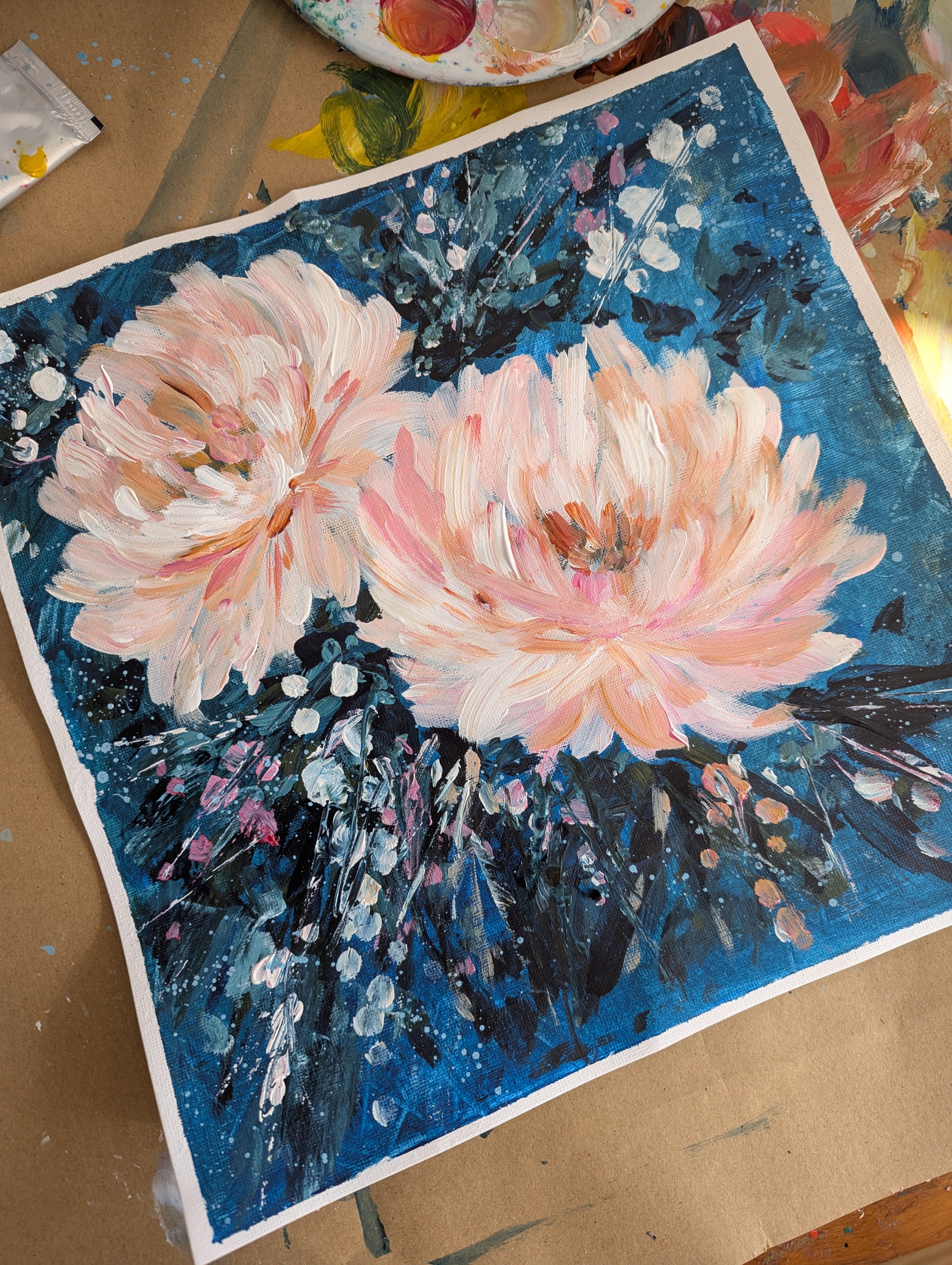 2 Peonies, Freestyle Floral masterclass in acrylics