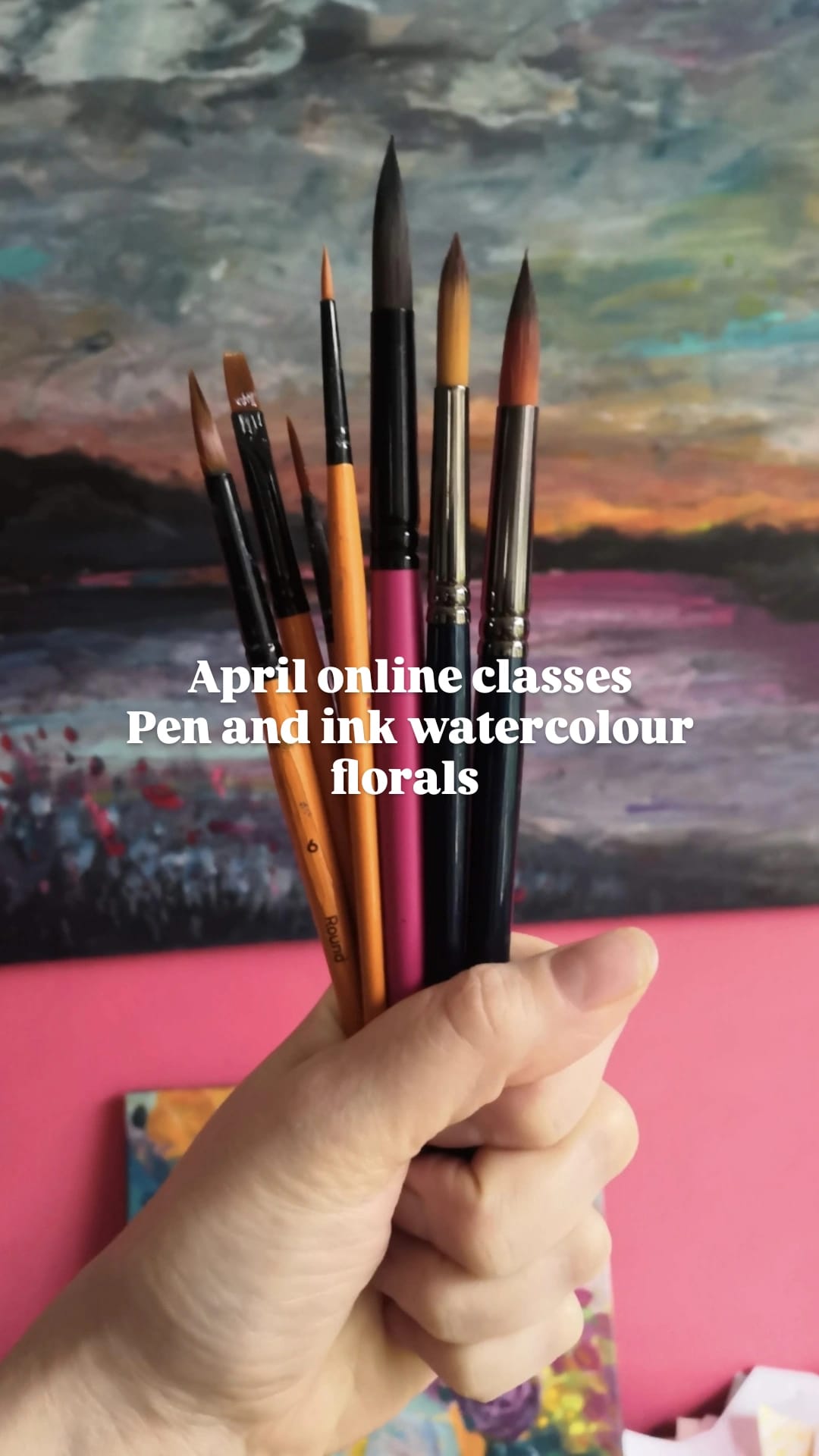 April, 4 weekly live online classes Pen & ink watercolour florals