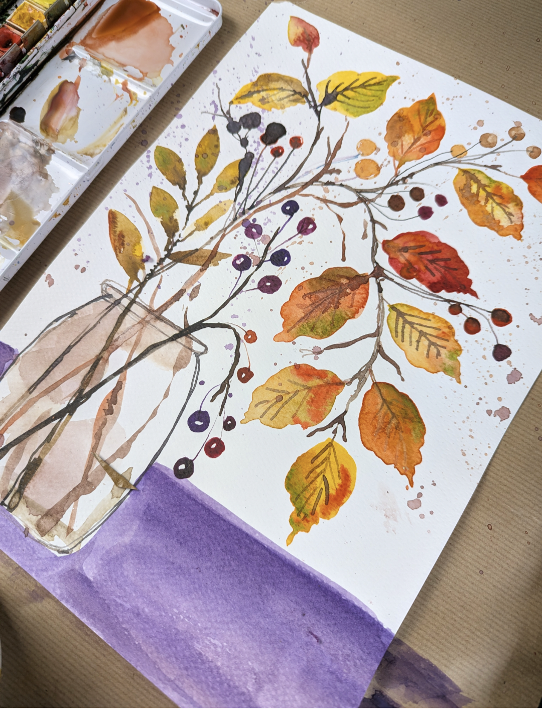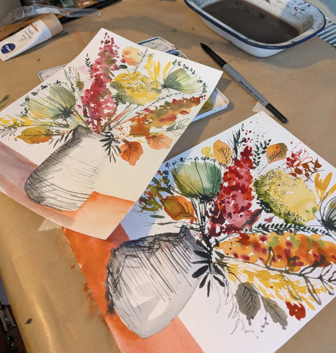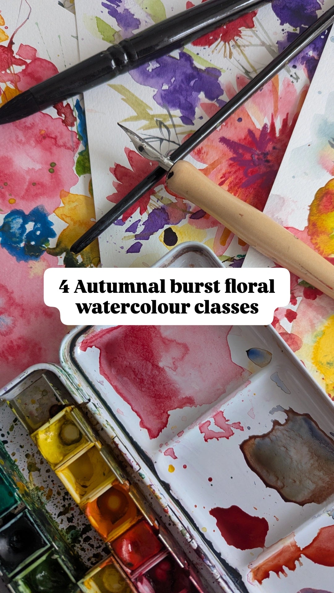 November online classes, 4 Autumn burst, floral vases watercolour classes