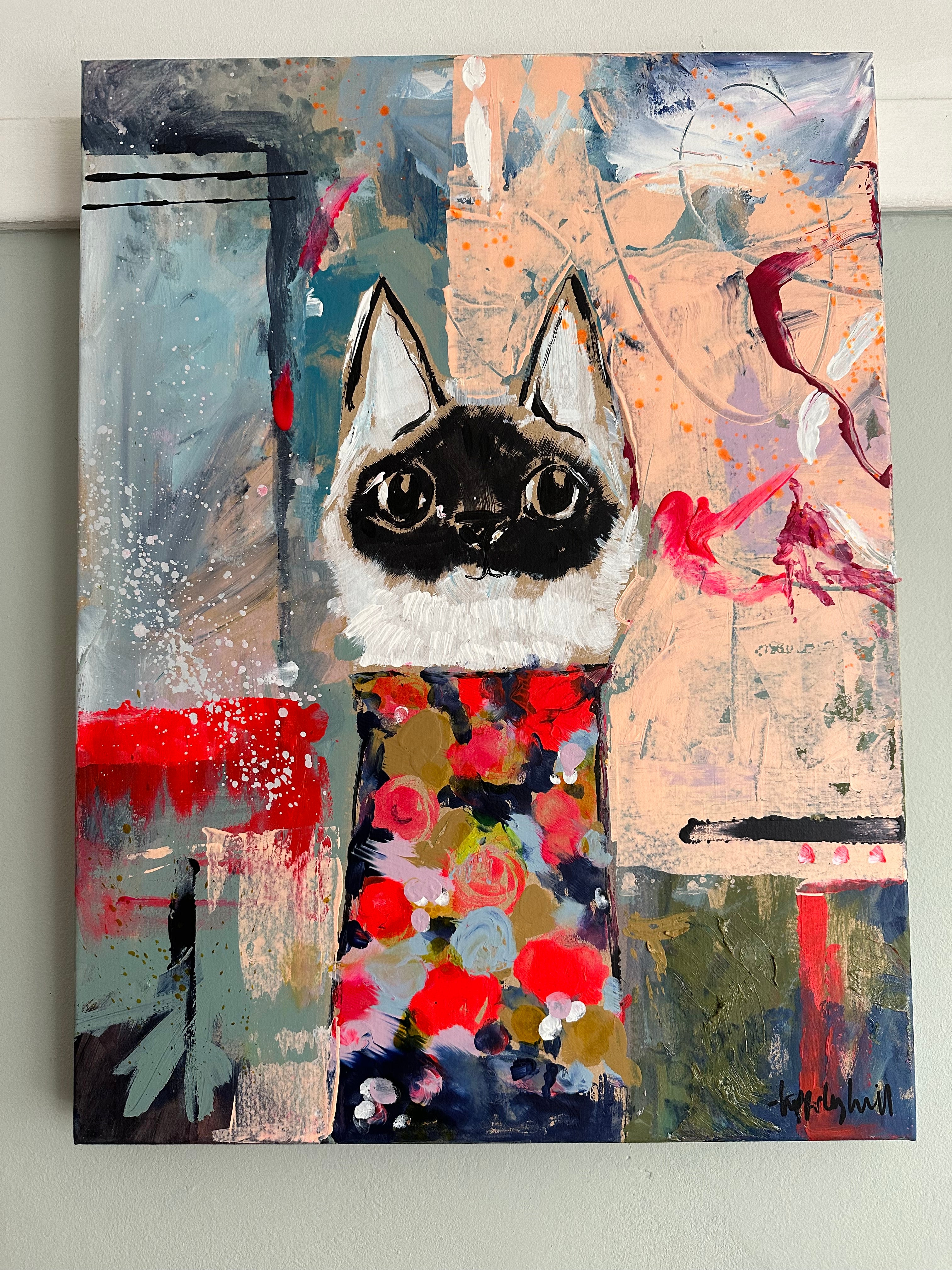 Cat portrait 'Coco’ acrylic and mixed media on 18” x 24” deep edged canvas