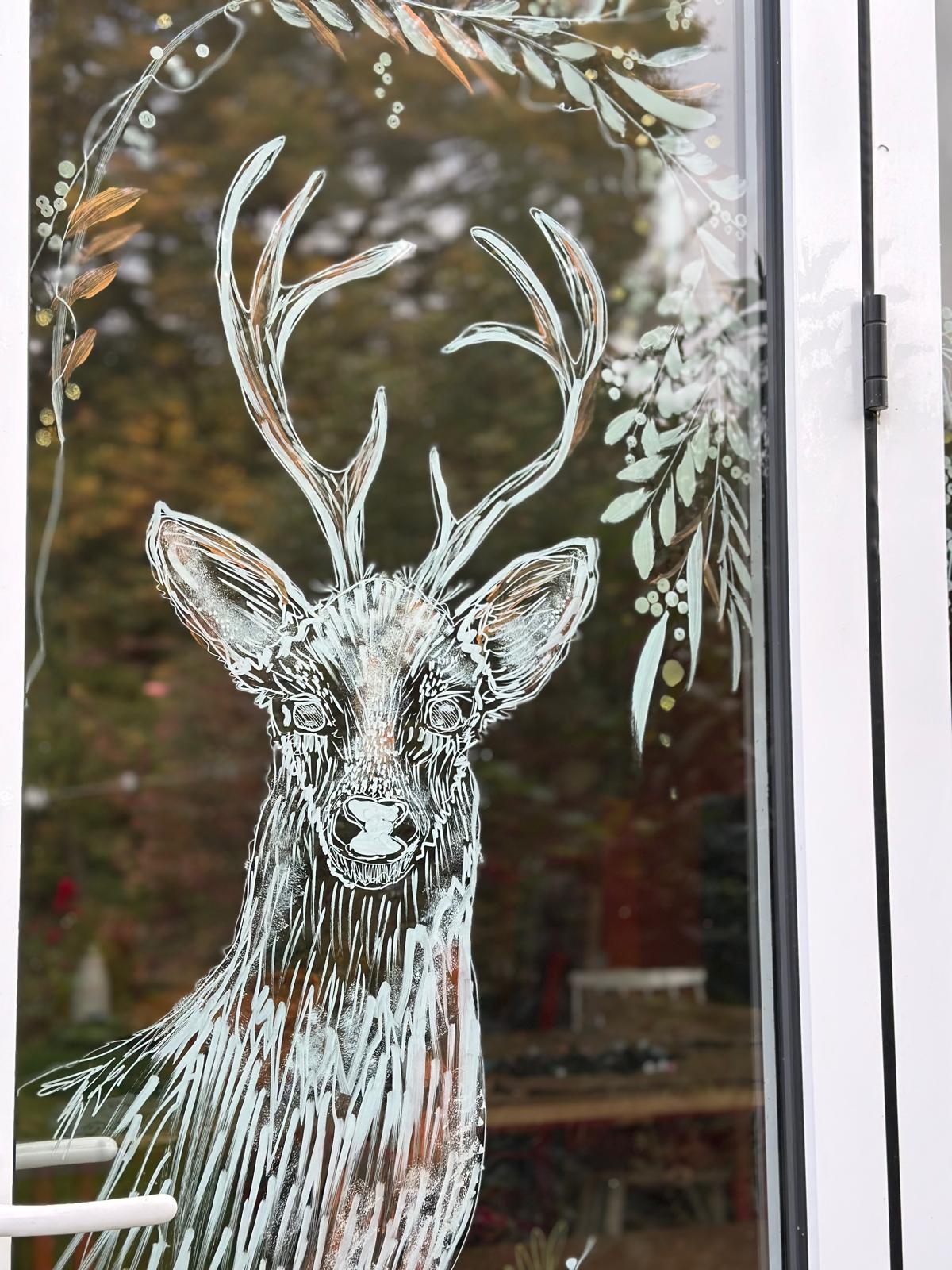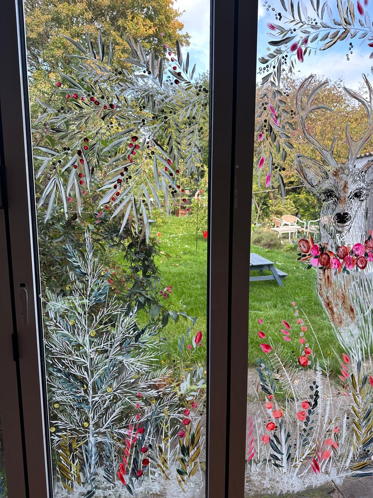 We have created 3 different styles of painting with one template. For a simple look use all white chalk pens, to add a bit of Christmas sparkle do all white and gold, or go for lots of colour, adding your own flourishes in chalk pens, Acrylic and emulsion paints.