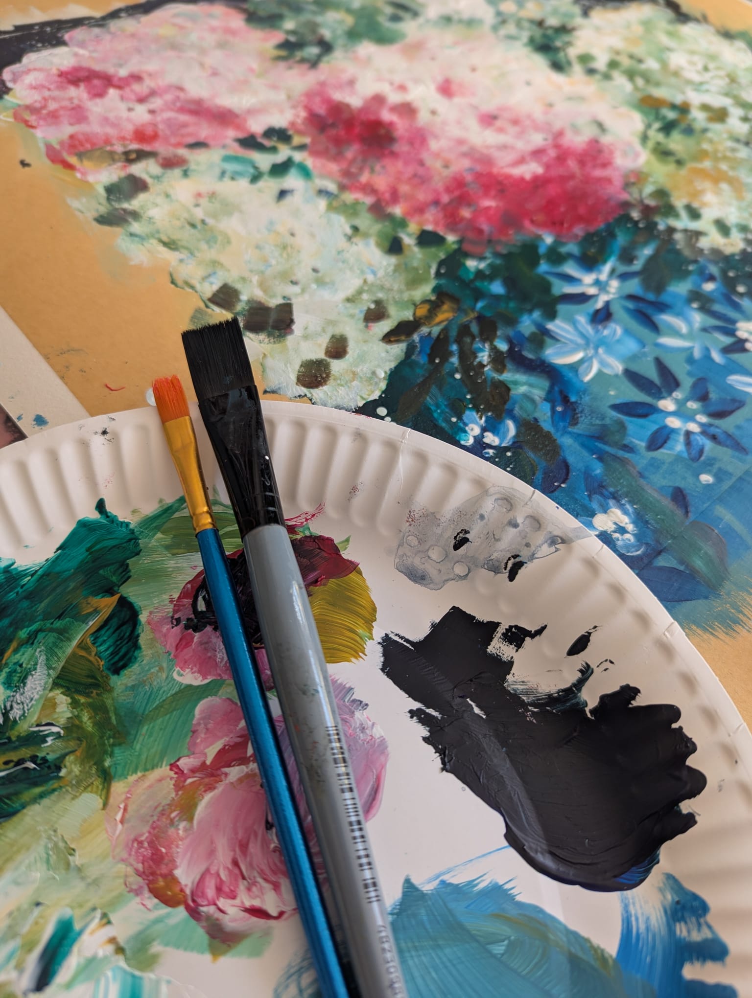 This is a ready to watch painting class in acrylic paint. I record everything in real time so you can paint along with me. I use a standard set of acrylic paints, flat brushes and for this painting a bit of plasticine. Each step is broken down into easy chunks. This class is suitable for beginners or accomplished artists who would like to loosen up and give freestyle florals a go. At the end of this class you will have a finished painting ready to hang. I am hoping it will give you the confidence to keep painting.