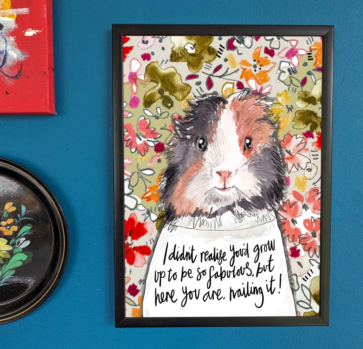 Printed quote animal print. A4 Guinea pig print ‘I didn't realise you'd grow up to be so fabulous but here you are, nailing it'