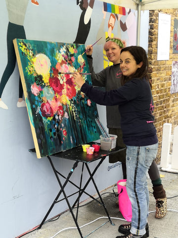 Abi and Roz are available for events where you can book and watch them create a masterpiece together in front of your very eyes. They are also available to paint sketchy dog portraits at your ‘bring your do to work day’.