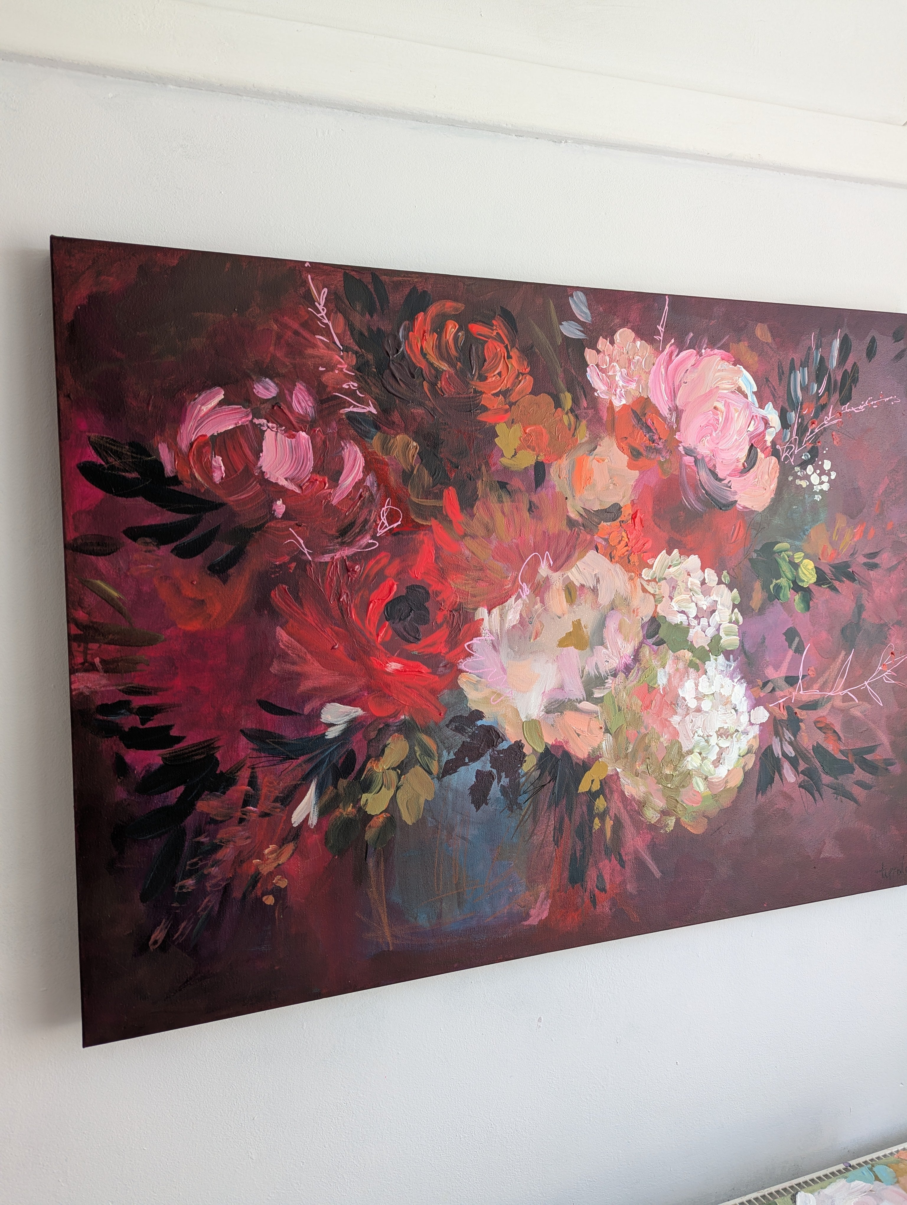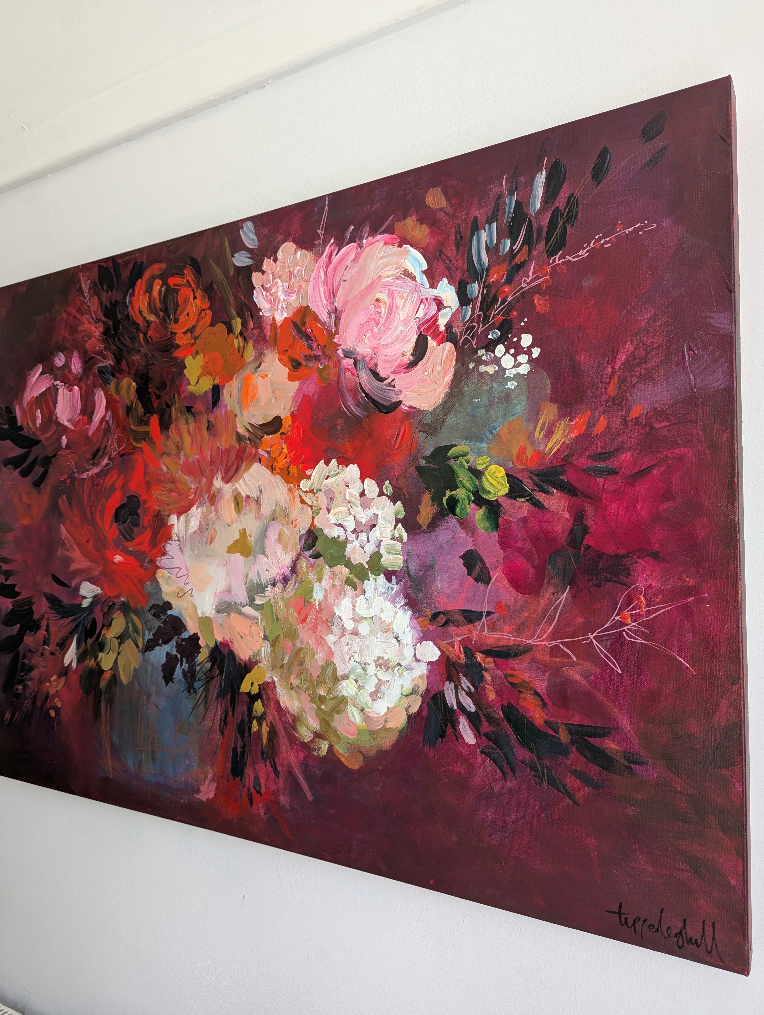 Abstract floral, ‘Deepest love’, acrylic and mixed media on canvas, 70 x 100cm on deep edged canvas