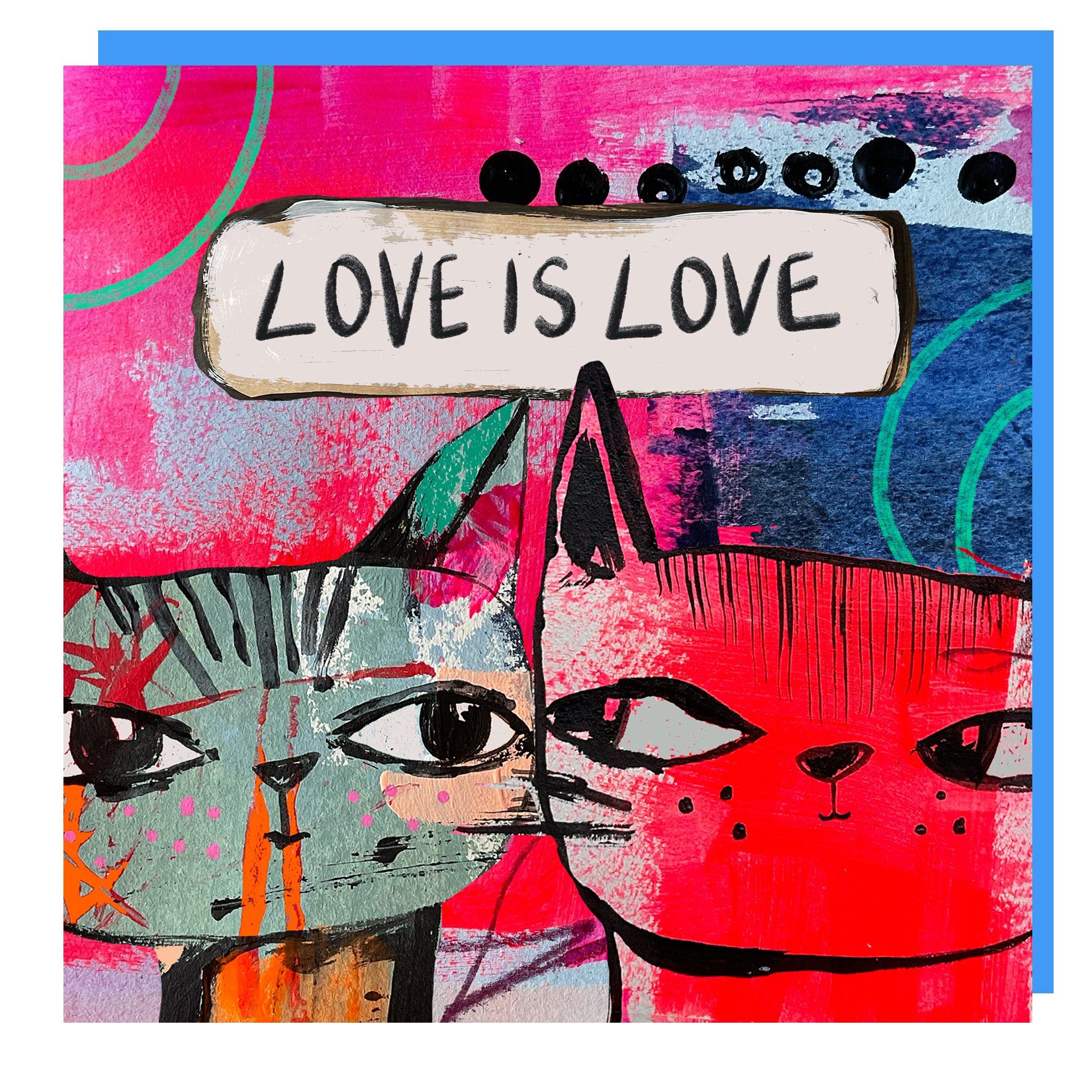 These fun painty cat cards are printed from original Acrylic paintings that both Roz and Abi have worked on together.