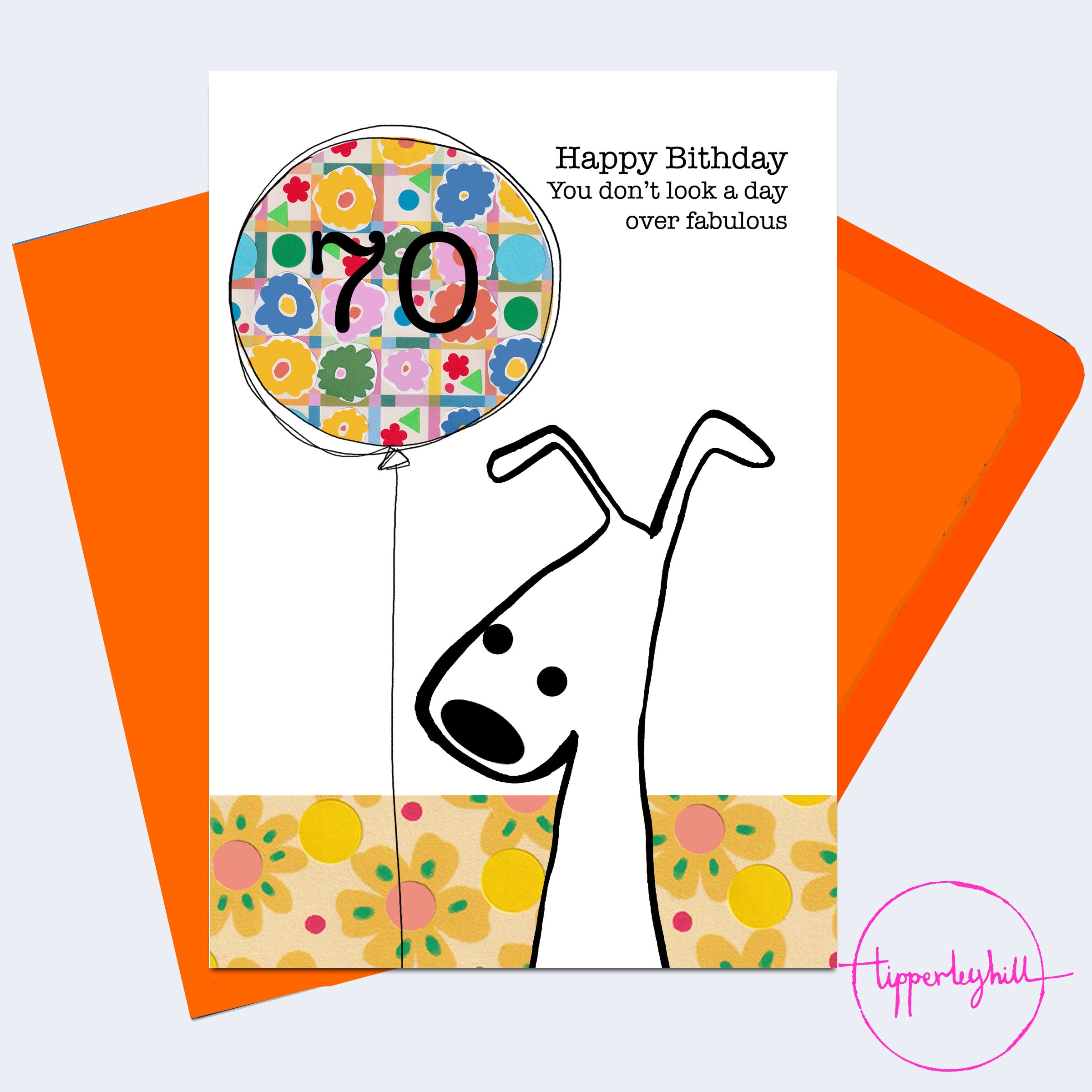 ‘Happy Birthday You don’t look like a day over fabulous’ 70th greetings card comes with a 5” x 7” orange envelope wrapped in cellophane. The card inside is left blank to write your own message.